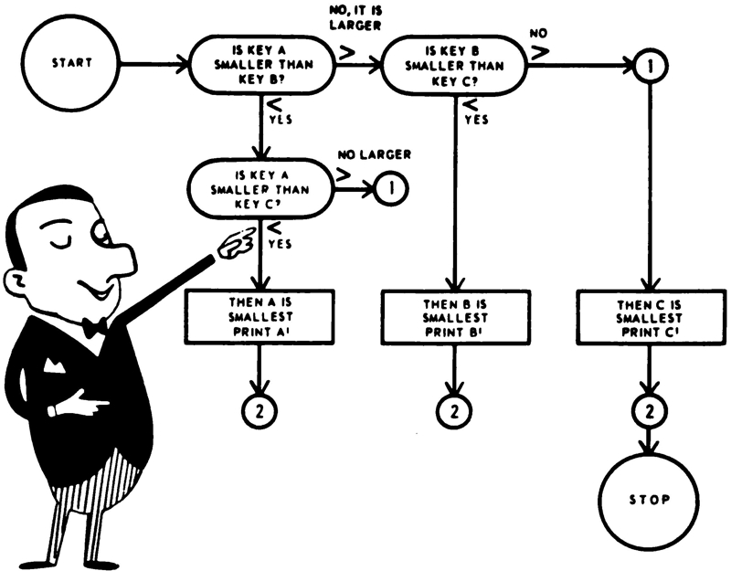 The large-scale computers we are becoming familiar with are not really as new as they seem. An Englishman named Babbage built what he called a “difference engine” way back in 1831. This complex mechanical computer cost a huge sum even by today’s standards, and although it was never completed to Babbage’s satisfaction, it was the forerunner and model for the successful large computers that began to appear a hundred years later. In the meantime, of course, electronics has come to the aid of the designer. Today, computer switches operate at billionths-of-a-second speeds and thus make possible the rapid handling of quantities of work like the 14 billion checks we Americans wrote in 1961.