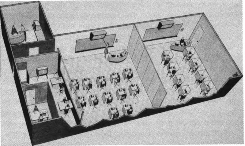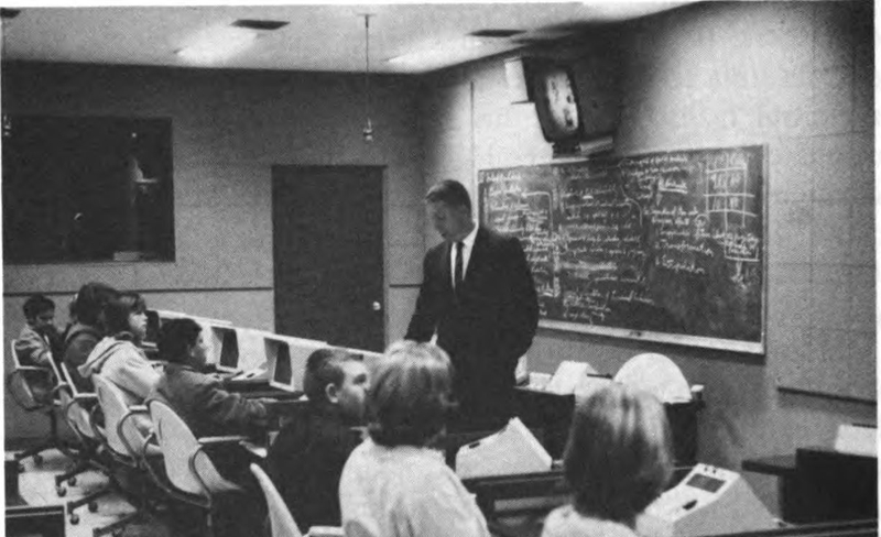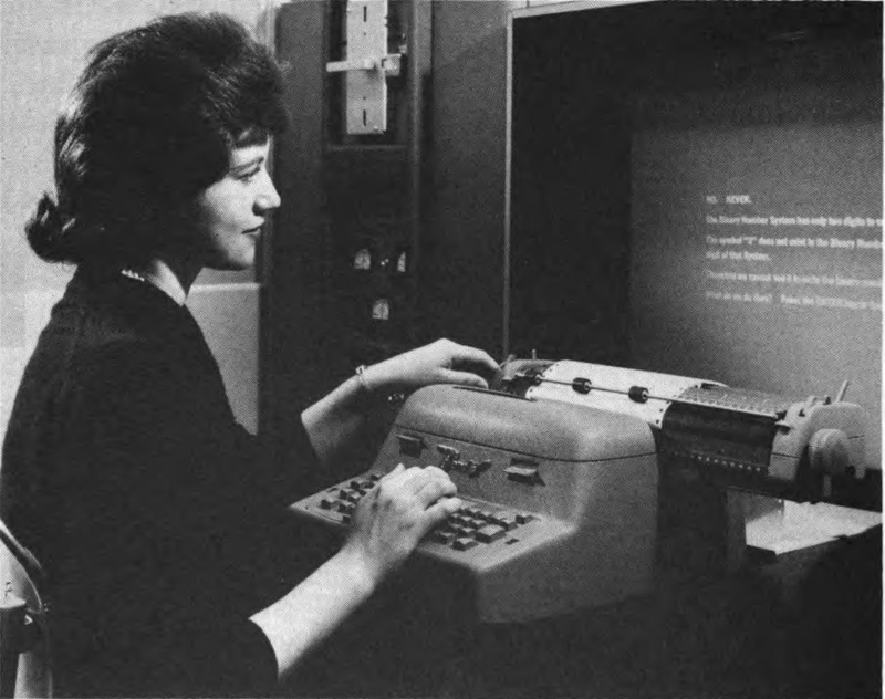 Along with computing machines a whole new technology is growing. Universities and colleges—even high schools—are teaching courses in computers. And the computer itself is getting into the teaching business too. The “teaching machine” is one of the most challenging computer developments to come along so far. These mechanical professors range from simple “programmed” notebooks, such as the Book of Knowledge and Encyclopedia Britannica are experimenting with, to complex computerized systems such as that developed by U.S. Industries, Inc., for the Air Force and others.