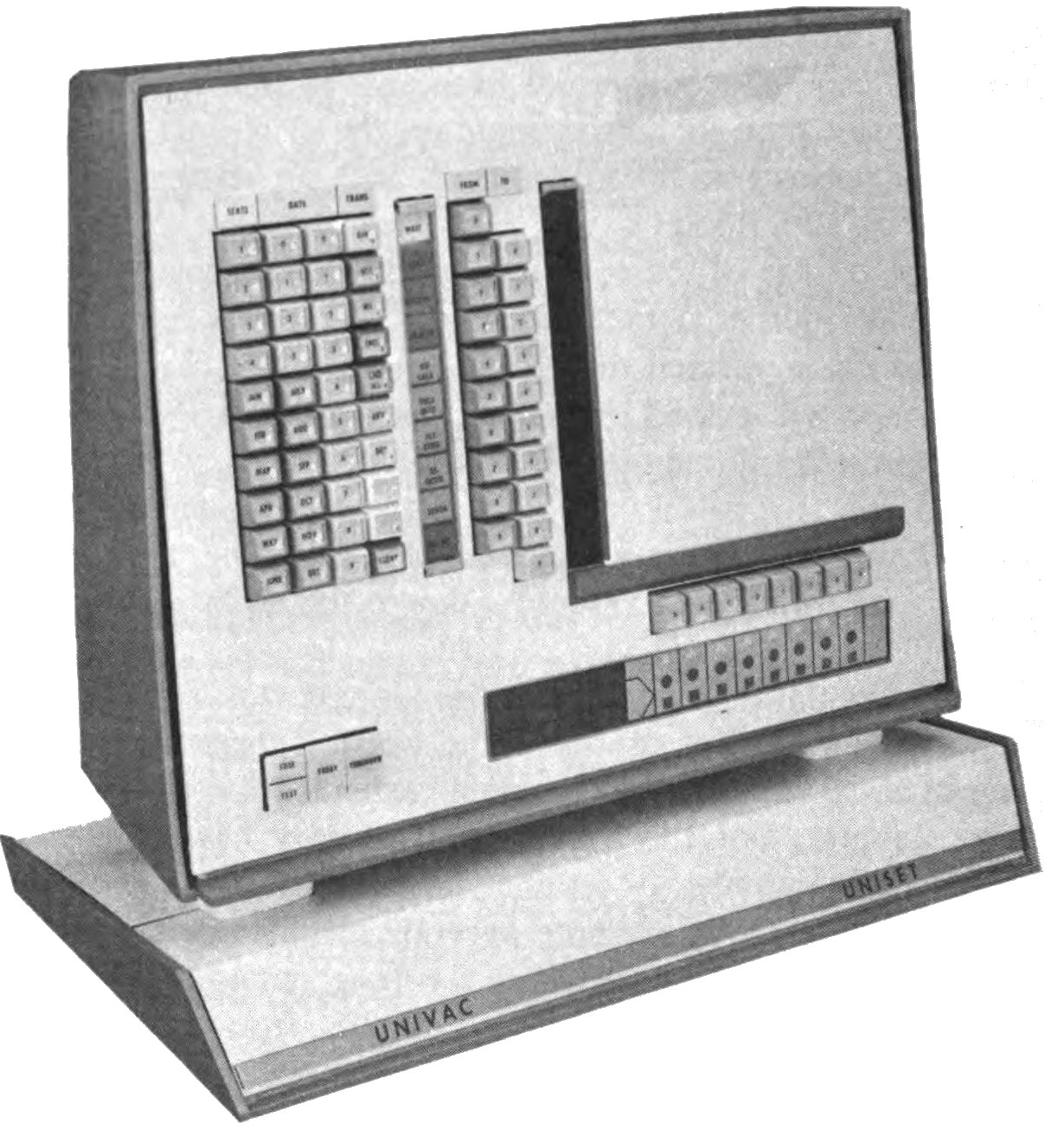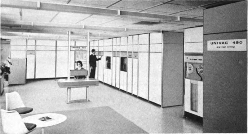 We have mentioned the use of such a tape voice in the computerized ground-controlled-approach landing system for aircraft, and the airline reservation system called Unicall in which a central computer answers a dialed request for space in less than three seconds—not with flashing lights or a printed message but in a loud clear voice. It must pain the computer to answer at the snail-like human speed of 150 words a minute, so it salves its conscience by handling 2,100 inputs without getting flustered.