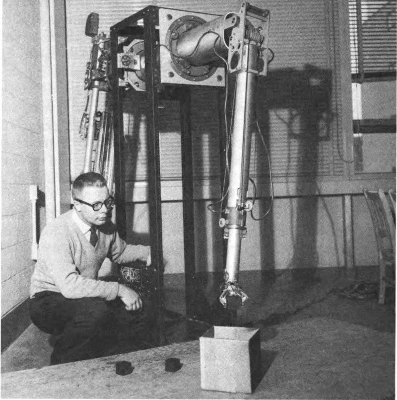 Men very wisely are now letting computers design other computers, and in one recent project a Bell Laboratories computer did a job in twenty-five minutes that would have taken a human designer a month. Even more challenging are the modern-day “robots” performing precision operations in industrial plants. One such, called “Unimate,” is simply guided through the mechanical operations one time, and can then handle the job alone. “TransfeRobot 200” is already doing assembly-line work in dozens of plants.