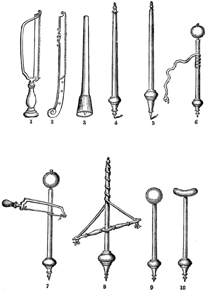 [815] The instrument here used is named πρίων χαρακτὸς; and, as far as I can see, was the same as the modiolus of Celsus, and the χοινικὶς of the later authorities. It would certainly appear to have been a circular saw, and consequently not unlike our modern trephine. See the figures and the Argument.