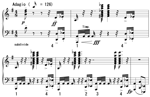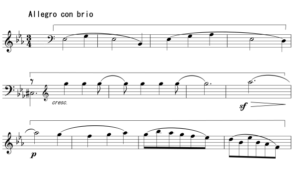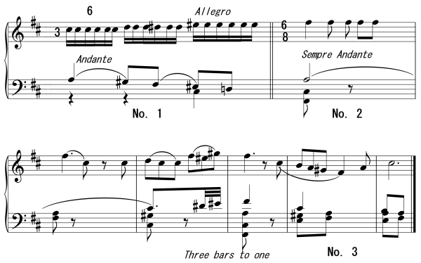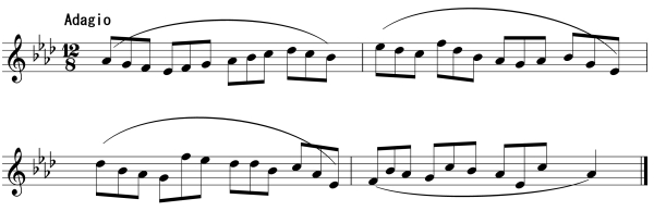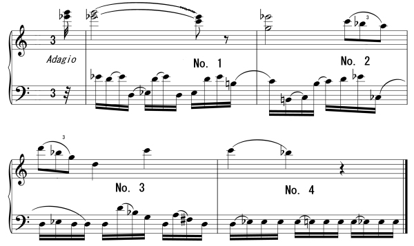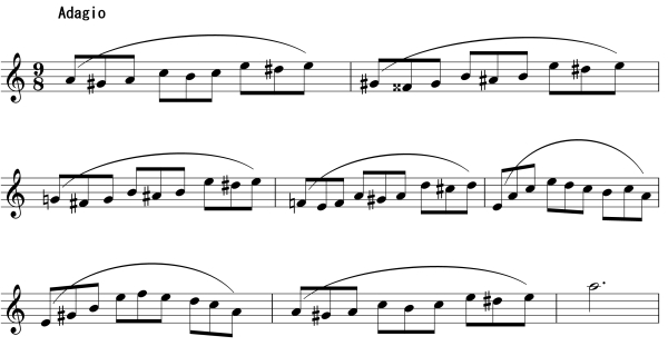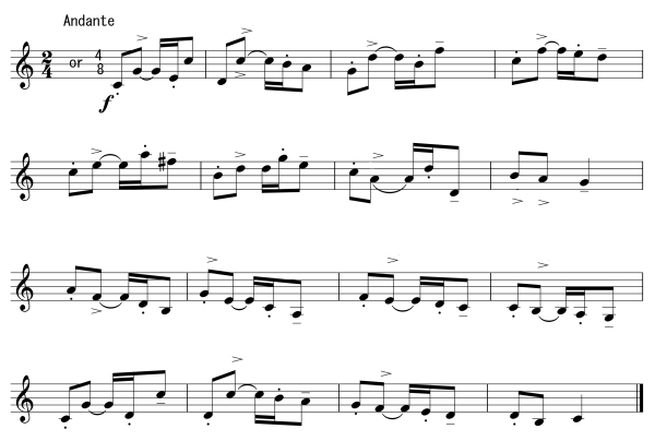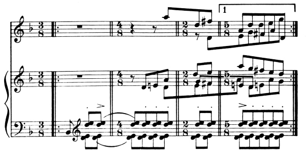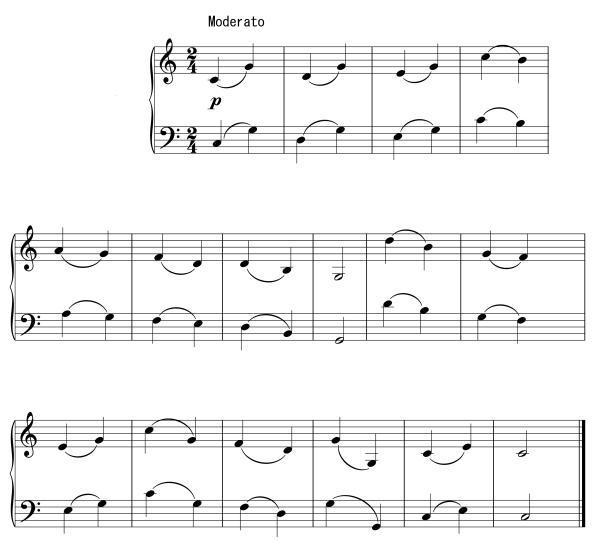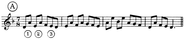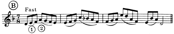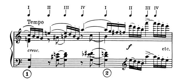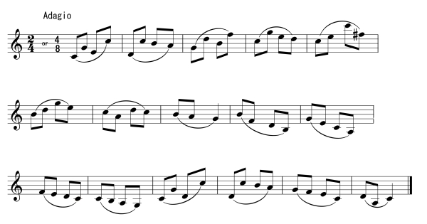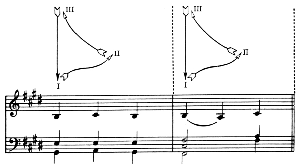 For instance, figure 1 would be executed with Music Ex. 1 thus: