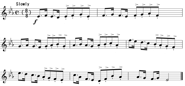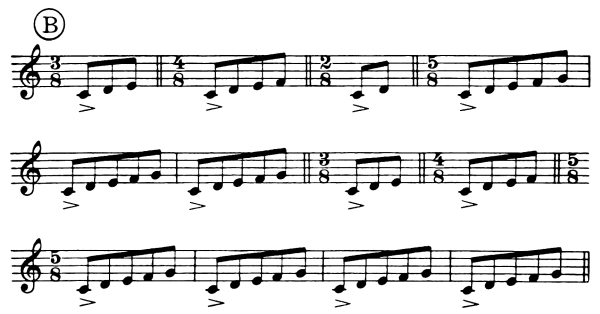 It is suggested for the individual practise that the student place the music examples on one side of the music stand and the diagram of the exercises on the other.