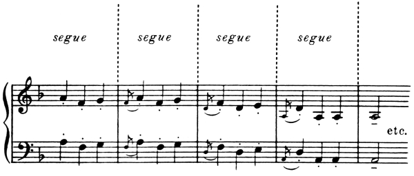 The transition from the 16th to the 17th century brought about important innovations in music—the accompanied solo numbers of the opera came into being, the figured bass and bar line were introduced generally into choral and orchestral works. And, when in the course of the 17th century the demand that the conductor cease this mechanical beating of the time and give the tempo in a manner commensurate with the effect desired became insistent, the conductor took his place among the performers and lead the music from the clavicembalo. From this [Pg 3] position he not only led the performance but also filled in the harmonies according to the figured bass. When the rhythm wavered, the first violin, whom we call the concertmaster, gave the beat.