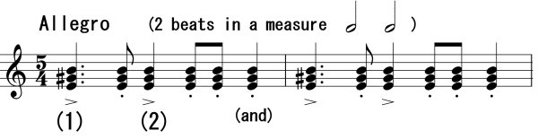 Each figure is to be executed in time with certain music examples of which each individual note corresponds to a point of arrival.