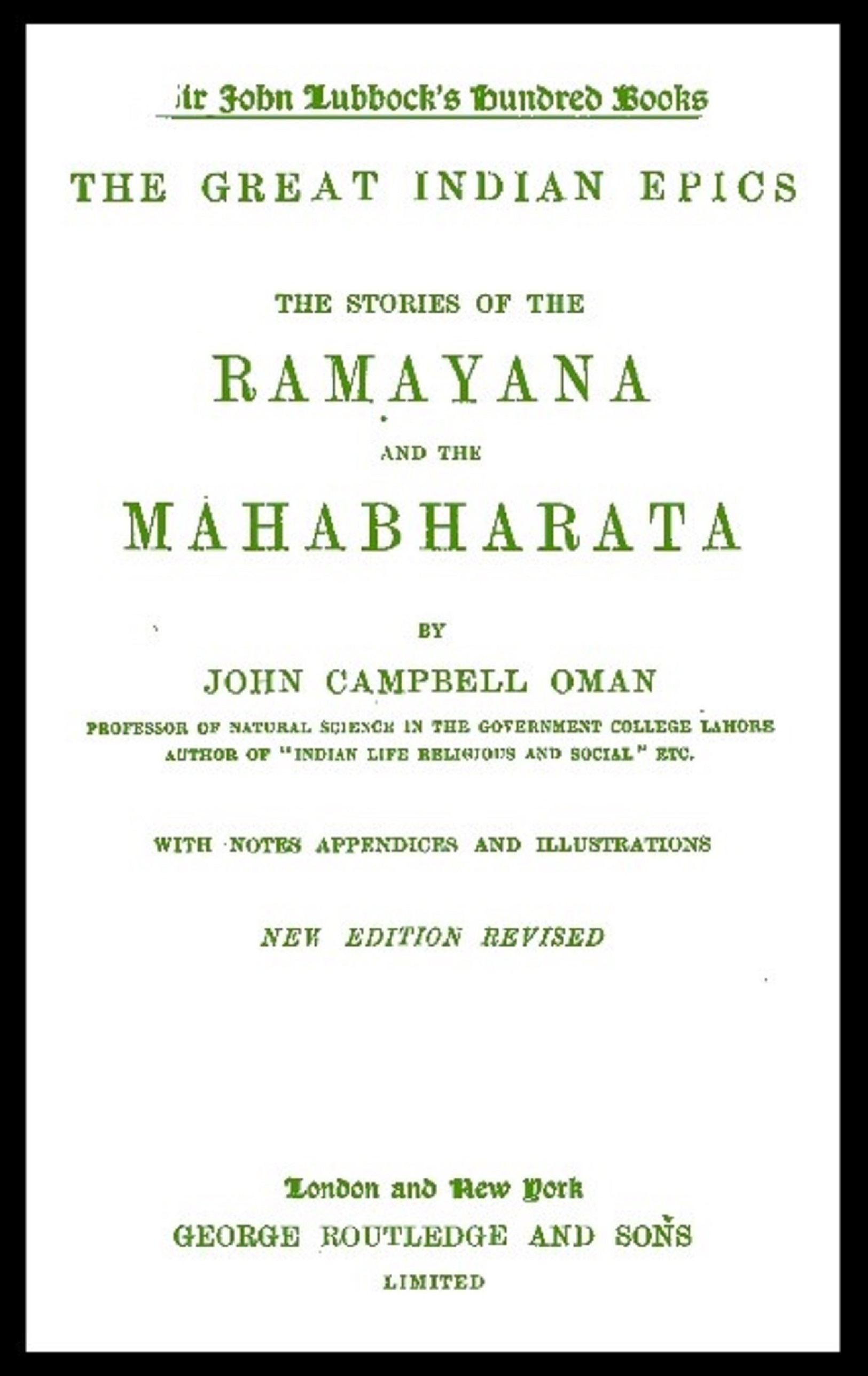 Foremost amongst the many valuable relics of the old-world literature of India stand the two famous epics, the “Ramayana” and the “Mahabharata,” which are loved with an untiring love by the Hindus, for they have kept alive, through many a dreary century, the memory of the ancient heroes of the land, whose names are still borne by the patient husbandman and the proud chief.[1] These great poems have a special claim to the attention even of foreigners, if considered simply as representative illustrations of the genius of a most interesting people, their importance being enhanced by the fact that they are, to this day, accepted as entirely and literally true by some two hundred millions of the inhabitants of India. And they have the further recommendation of being rich in varied attractions, even when regarded merely as the ideal and unsubstantial creations of Oriental imagination.