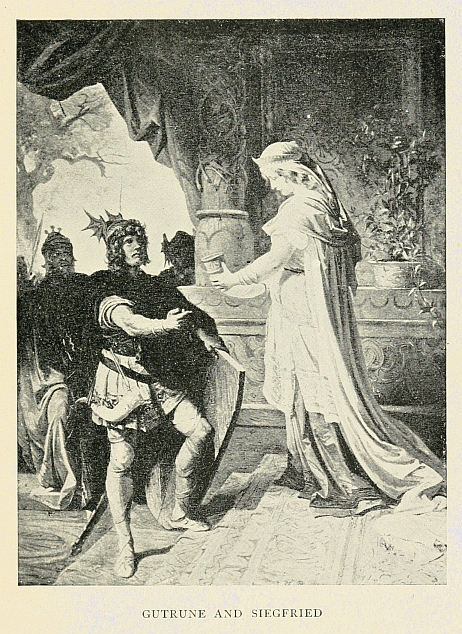 For Siegfried cared nothing for her himself, and thought only of the fair maiden down in the great hall built upon the shore of the Rhine—Gutrune, the lady of the Gibichungs.