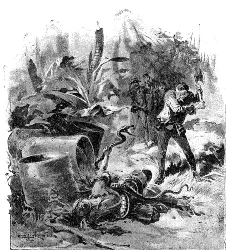 Il capitano, furibondo, si era alzato tendendo le pugna verso il papuaso, quando improvvisamente udì echeggiare due colpi di fucile e subito dopo dei clamori assordanti.