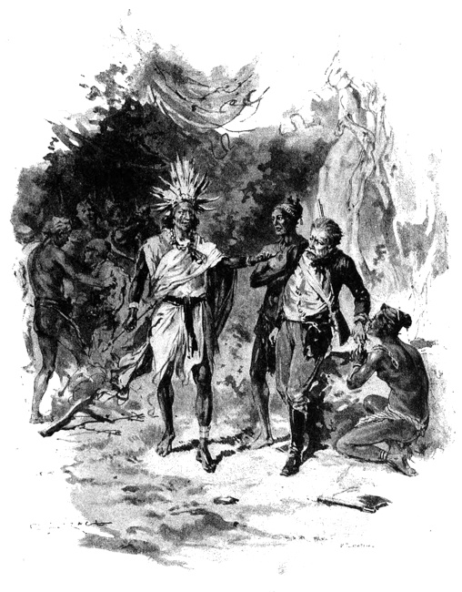 — Padre, disse il giovane guerriero. Questi uomini vengono dai lontani paesi situati all’ovest e vogliono raggiungere le isole Arrù per ritornare in patria. Io li guiderò fino all’arcipelago.