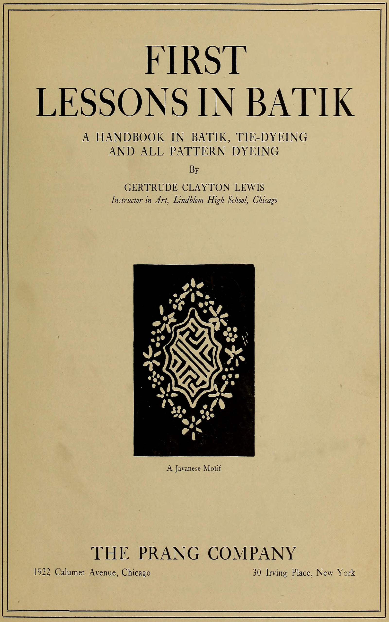 The growing interest in “Batik” leads the author to believe that this Handbook, describing the various processes and illustrating a number of definite problems, will meet the need of many artists, teachers, and craft workers who wish to try their hand at this new and fascinating oriental art.