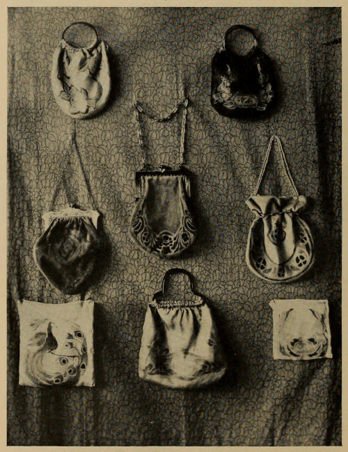 When a small spot of a contrasting color is wanted on such a place as the wings of the bird on the velvet bag on page 42, the method of removing the color by ammonia is the one to use.
