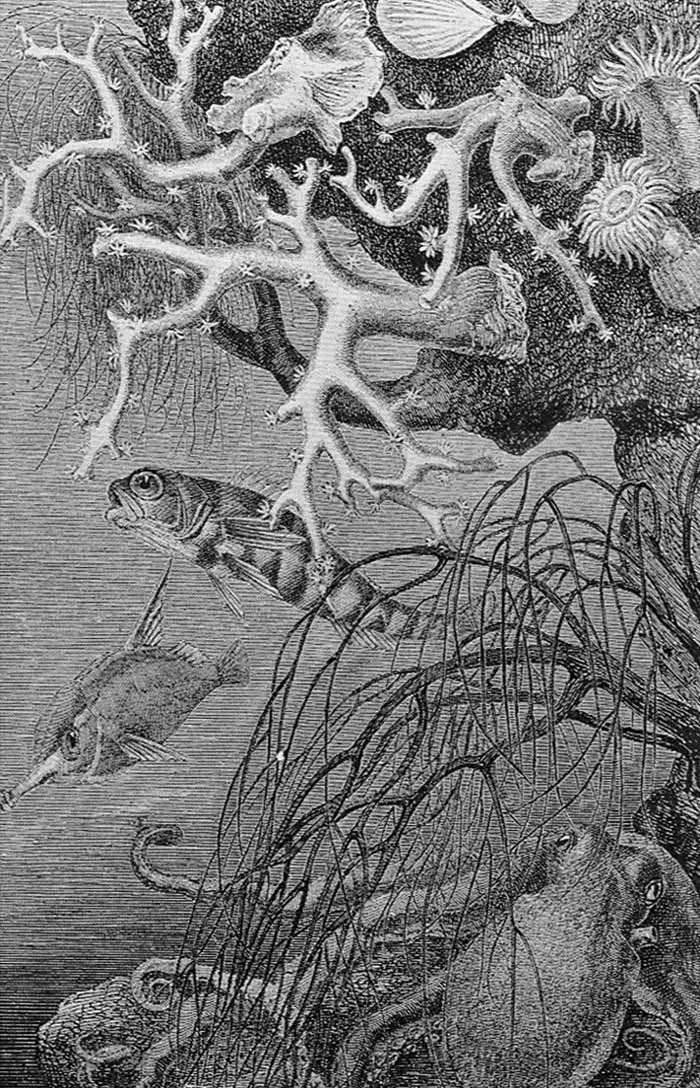 “You see that bed of pink flowers over there, and those green rushes, and those fern-like plants? Well, they are all living polyps, or colonies of polyps, some kinds of which leave coral when they die, like the coral polyps proper.