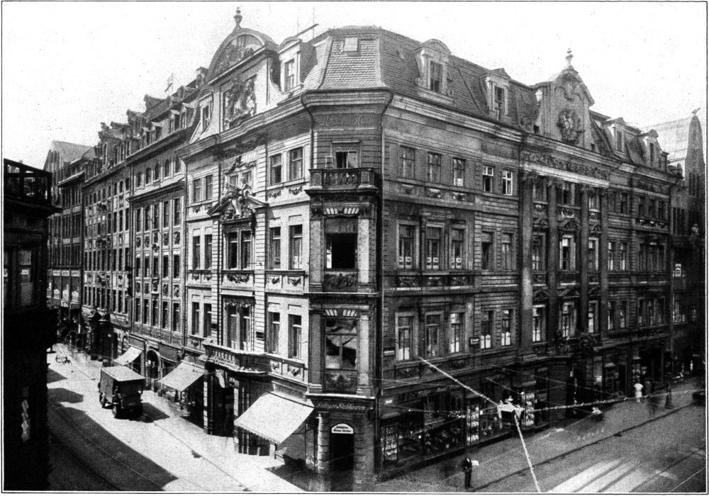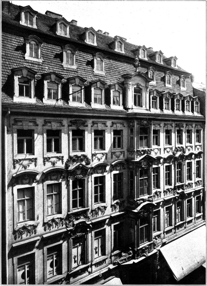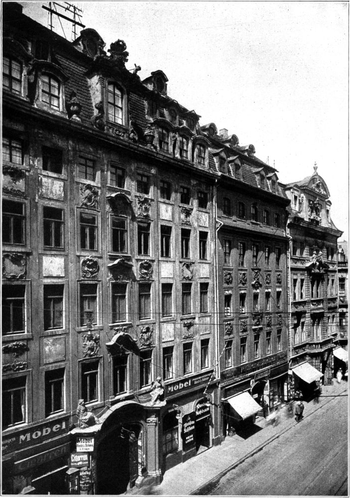 So hat es eine besondere Begründung, gerade an dieser Stelle auf die geschichtliche und ästhetische Bedeutung der Leipziger Häuser hinzuweisen, die zu[253] allem übrigen bisher auch kunsthistorisch weit weniger bekannt waren, als es ihr Wert verdiente[2].