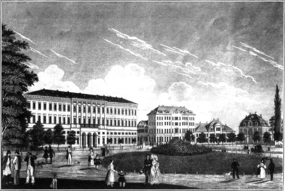 Vier Bauwerke sind es, welche heute dem Besucher des Augustusplatzes durch ihren gleichartigen Stil besonders in das Auge fallen: Universität, Post, Theater und Museum. Diese Gebäude präsentieren sich ihm in ihrem italienischen Renaissancestil als scheinbar gleichaltrige Gefährten aus dem Ende des vorigen Jahrhunderts; doch dem ist nicht so.