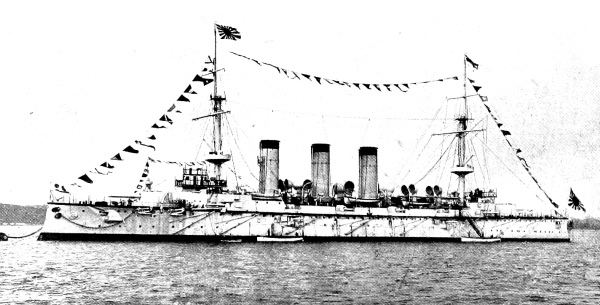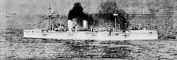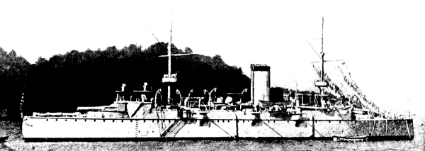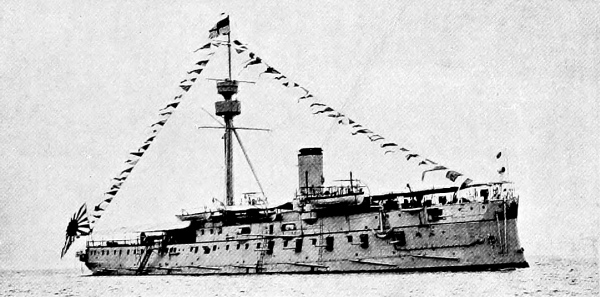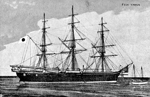 [15] It was currently reported, and for a long time believed in Japan, that the Unebi had been captured by the Chinese and taken into one of their harbours. Another report was to the effect that the Chinese had waylaid and destroyed her—a not impossible incident. A typhoon is, however, a more likely cause. It may be remembered that our gunboat Wasp mysteriously disappeared in Far Eastern waters, and nothing was ever heard as to how she perished.