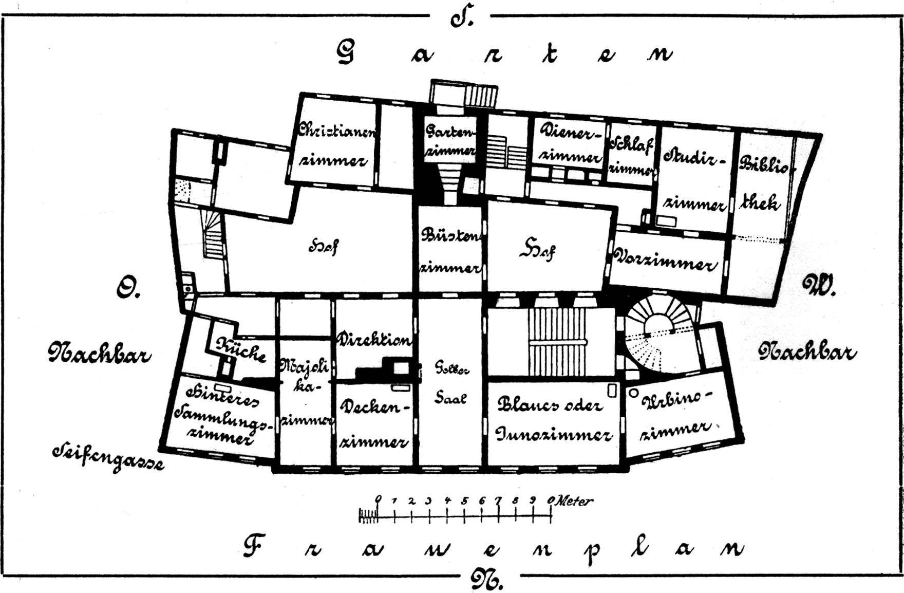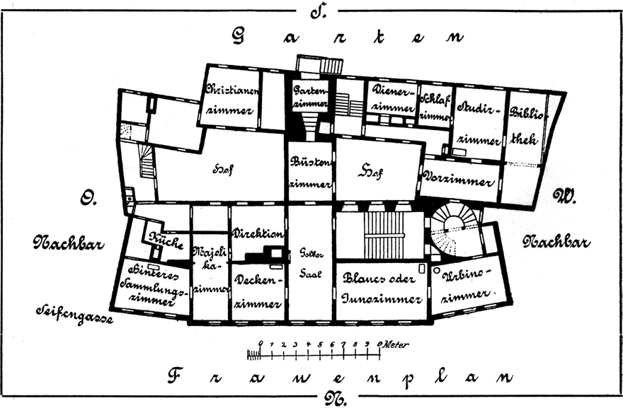 Wissenschaft und Kunst reichten ihm dauernde Güter; lesend und beschauend konnte er sich mit den besten Vorfahren, schreibend mit den besten Künftigen unterhalten.