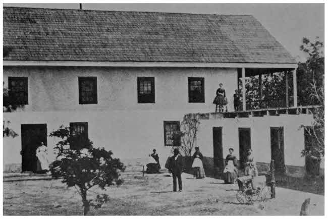 At the rear of this house was a low porch, without a railing, where the carriages drove up many times a day, for, with the large family, the wide acres, and active business, there was much coming and going. This veranda served as an annex to the dining room. In those days fruit came after breakfast instead of before, and it was here that we ate it, tossing the squeezed oranges and the scalloped watermelon rinds into a conveniently placed box that was frequently emptied.
