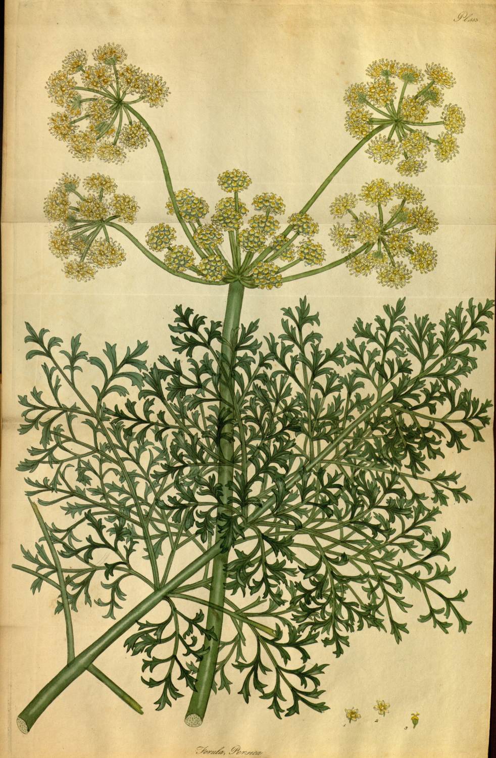 Assa fœtida grows naturally near Gilan in Persia; and from seeds sent from thence to the Academy at St. Petersburgh plants were obtained, two of which were sent to Dr. Hope at Edinburgh, by Dr. Guthrie, to whom they had been presented by Professor Pallas, in whose herbarium we have seen specimens of it, but without fructification. One of these plants flowered and ripened seeds in the Botanic Garden at Edinburgh, and is described by Dr. Hope in the lxxvth vol. of the Philosophical Transactions, and a figure annexed, the only one hitherto published of the species; the Assa fœtida of Kæmpfer being undoubtedly a different plant. Our specimens were obligingly communicated by Dr. Williams from the Botanic Garden at Oxford; which, with that of Edinburgh above mentioned, the Cambridge Garden, the Physic Gardens at Chelsea, and Mr. Dickson’s private collection at Croydon, are the only gardens in Britain, as we are informed, that yet possess the plant. The gum exudes from the roots, which are tuberous and perennial, on the slightest incision being made; and every part of the plant, even to the extremities of the leaves, smells strongly of it. It is hardy enough to bear our climate, and even ripen its seeds in mild seasons. It is not improbable that at a future time we may be furnished with this valuable article of the Materia Medica, of English growth. The long list of its virtues mentioned by Dr. Woodville we need not here enumerate; its reputation as a cordial for low spirits alone, in these days, entitles it to notice.