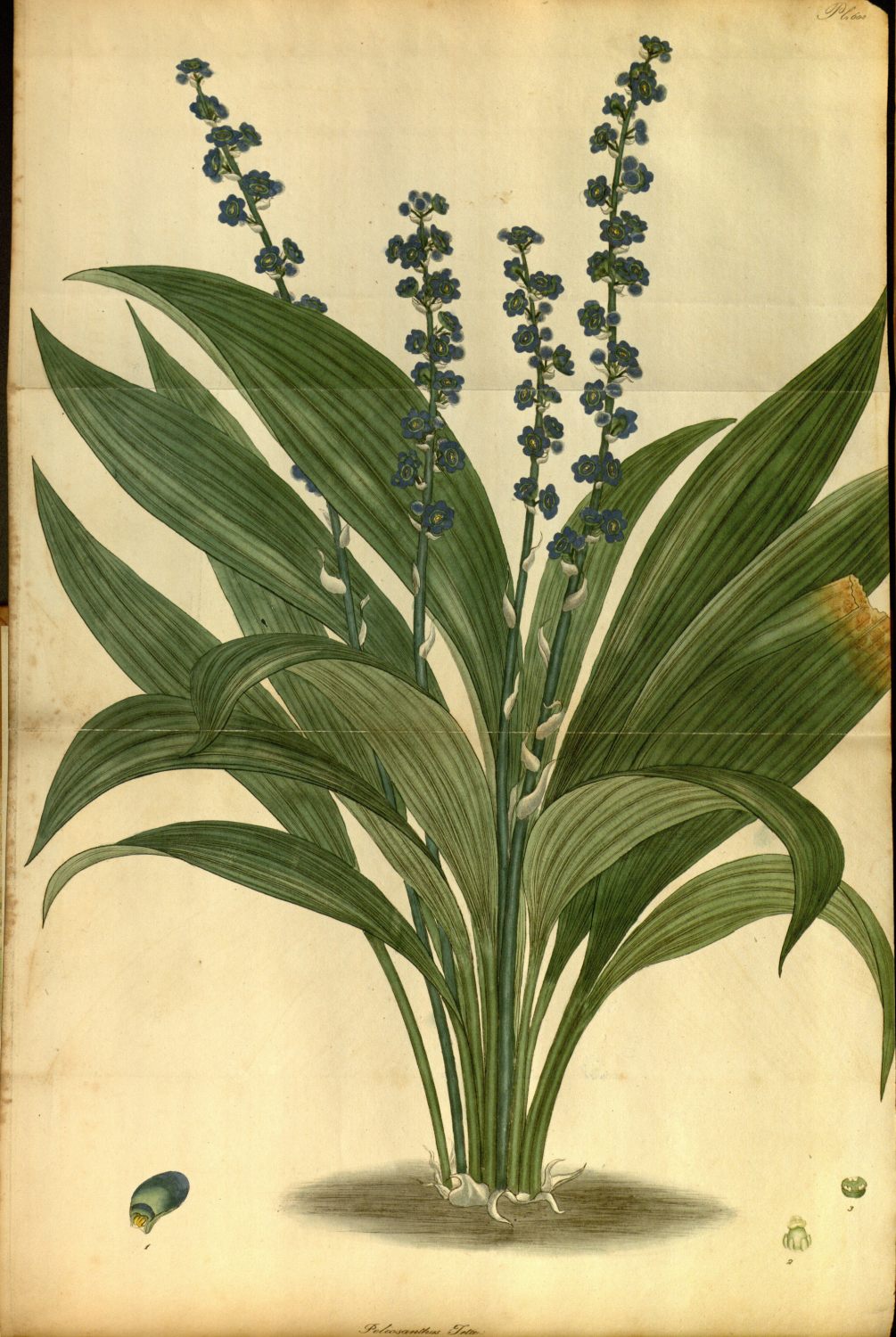 We have seen a very good coloured drawing of the plant taken in India in the collection of J. Fleming, esq. which represents the fruit (which has not yet ripened in England) as a bluntly oval, fleshy berry, with the seeds in pairs as in the germ. Both this drawing and the plant received from India by Lady Amelia Hume were marked Teta viridiflora; Teta being perhaps (if we may hazard a conjecture) the name applied to the plant by the native Indians. However this may be, as it appears to be known in India by that name, we have retained it for the specific designation; applying to the genus, in conformity to the Linnæan canons, (from πελιος, lividus, and ανθς, flos,) the name of Peliosanthes. Our drawing represents the original plant imported from India, with which we were favoured by Sir Abraham Hume, bart. last April, through the kindness of A. B. Lambert, esq. who has also informed us, from Dr. Roxburgh’s MSS. in his possession, that the plant is found growing naturally about Chittagong in the East Indies. We have just seen two other species of the genus in the curious collection of T. Evans, esq. at Stepney, imported by him last Autumn from Prince of Wales’s Island, of which they are natives. One of them has the leaves nearly of a blue colour; and Mr. Evans’s collector informs us, that he found five or six species growing naturally in the island above mentioned, although he had not the good fortune to bring them alive to England.