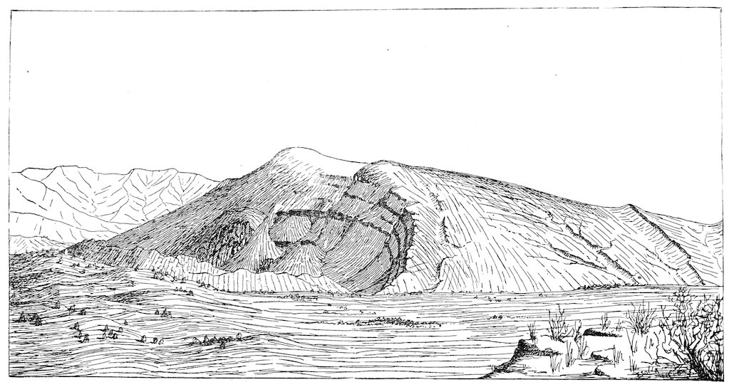 Another illustration exists at the mouth of the Colorado River. As 135has been shown by Blake in the fifth volume of the Pacific Railroad Reports (p. 236), the delta of the Colorado—or in other words the alluvial cone which is built at its mouth—has extended itself completely across the Gulf of California, severing the upper end from the lower and from the ocean, and converting it into a lake. In continuing the upbuilding of the delta the river has flowed alternately into the lower gulf and into its severed segment. At the present day its mouth opens to the lower gulf; but at rare intervals a portion of its water runs by the channel known as “New River” to the opposite side of the delta. While it is abandoned by the river the lake basin is dry, and it is known to human history only as the Colorado Desert. Its bottom, which is lower than the surface of the ocean, is strewn with the remains of the life its waters sustained, and its beaches are patiently awaiting the cycle of change which is slowly but surely preparing to restore to them their parent waves.