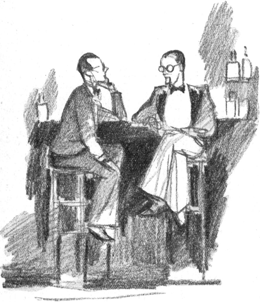 – Isten bizony! – a rouge úgy adja, mintha pityergésre hajlana, de persze nevetni fog az is inkább, miután sikerült ennek a másik széknek hirtelen hátra rukkolni s az édes piros itóka lecsúszott ügyesen azon a világítatlan és lépcsőtlen bárzsingon.