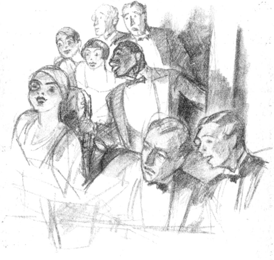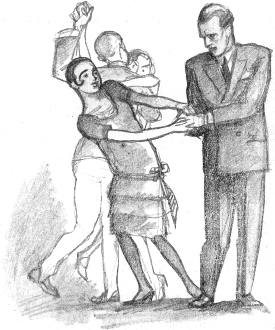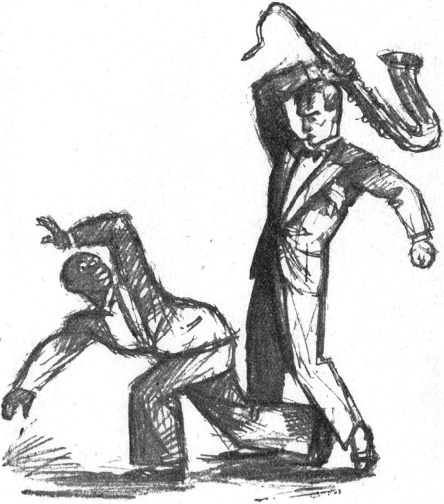 Susognak, halkakat kiáltanak, sőt füttyengetnek, emelkednek is, nyujtogatják a nyakukat gavallérok és hölgyek egyszerre; a jazz elakadt egy pillanatra s a táncosnép elbotol a lépésből a váratlan eseménytől.