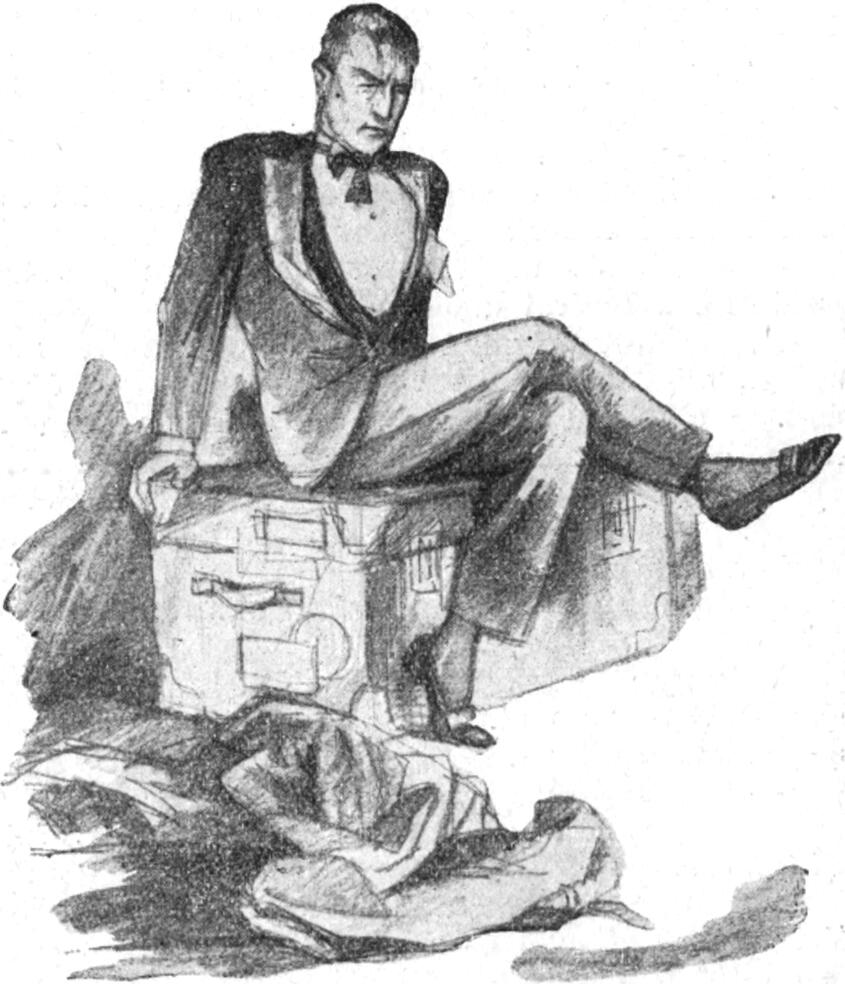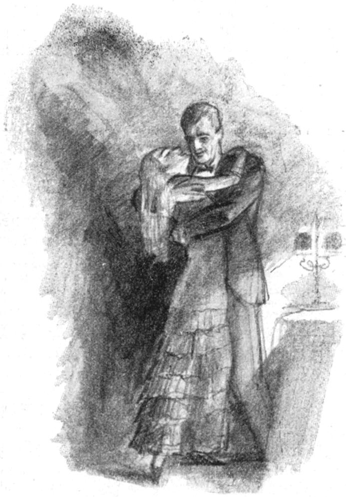 Mikor a függönyt kinyitja, az álarcos hölgyecske ott állt az asztal előtt, még tartja a kemény selymet az arca előtt s mintha kéken csillognának azok a megbújt szemek, amelyek abból reá leskelődnek.