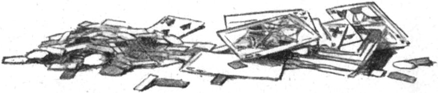 Lehajol, a hosszu szoknya aljáról tép föl egy fodrot; voilá! – s elröpíti. Még egyet… harmadikat… a csipkefodrok úsznak, tétováznak a levegőben, hisz oly könnyűek, mint a füst…