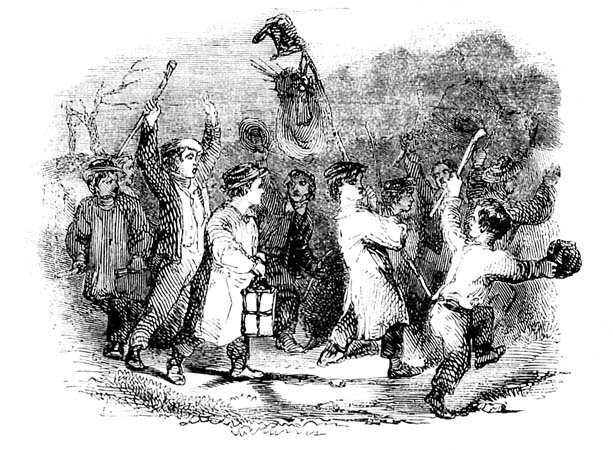 Well, on the Fifth of November, they got up almost before it was light, and as they went along the village in their way to the place where the bonfire was usually made, you might have heard[11] some forty or fifty voices shouting with all their might the old song,