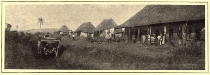 Often a dozen yelled in chorus. Failing to budge the foremost cart, all ceased their efforts [93]and, wildly gesticulating, argued and wrangled while more bulls were brought from a rear cart and hitched to the one stuck in the mud ahead. It took a dozen of the wide-shouldered, powerful bulls, pulling all together, with all their might, to drag each cart to the hard ground in the mill yard. In the meantime, scores of idle mill laborers, representing every type which the island affords, lounged around, dividing their attention between the curious struggle and the strange sight which we made in our motor car. While they watched with curious eyes, they pared long sugar canes with skillful flips of their machetes and sucked the thin sweetness.