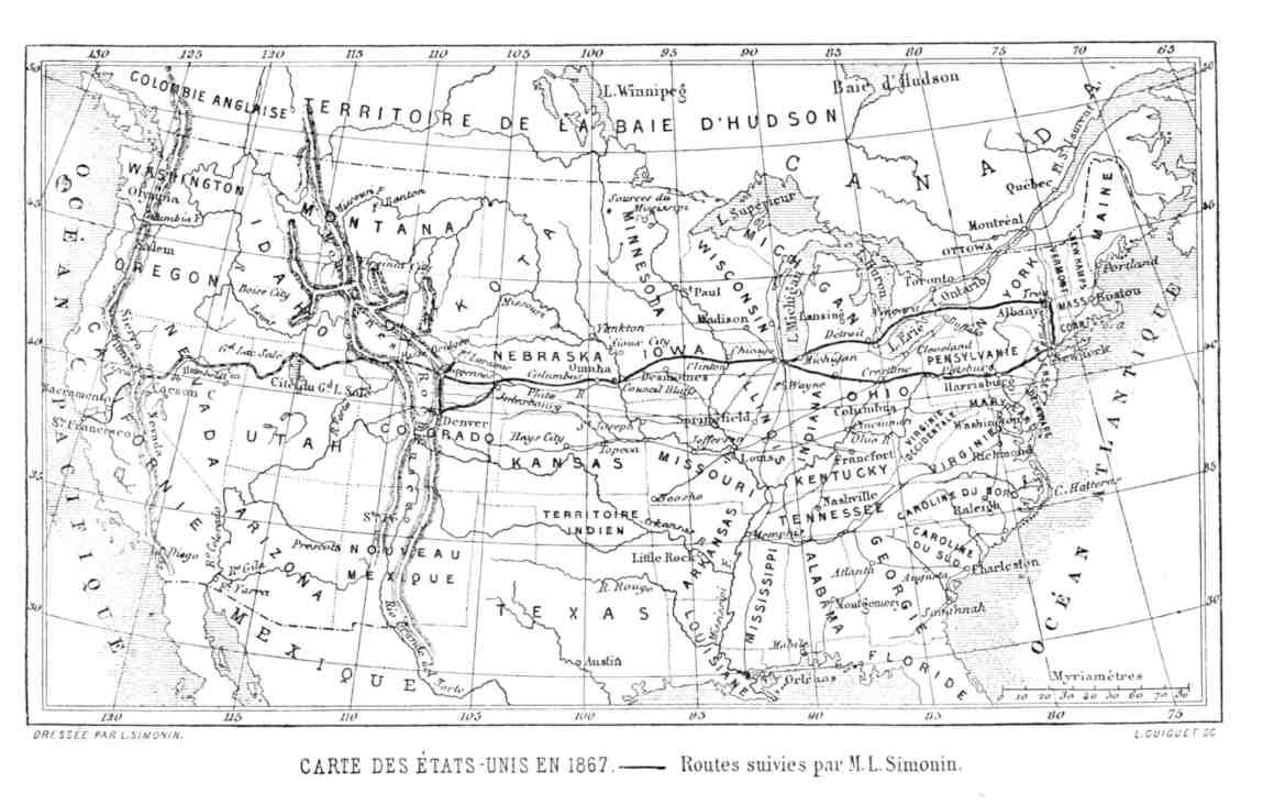 On dit que tout chemin mène à Rome; tout chemin mène aussi vers le Grand-Ouest américain. J'ai pris le plus court, le plus direct, et voilà pourquoi je vous écris ma première lettre à deux mille lieues de Paris, que j'ai laissé il y a seulement quinze jours.