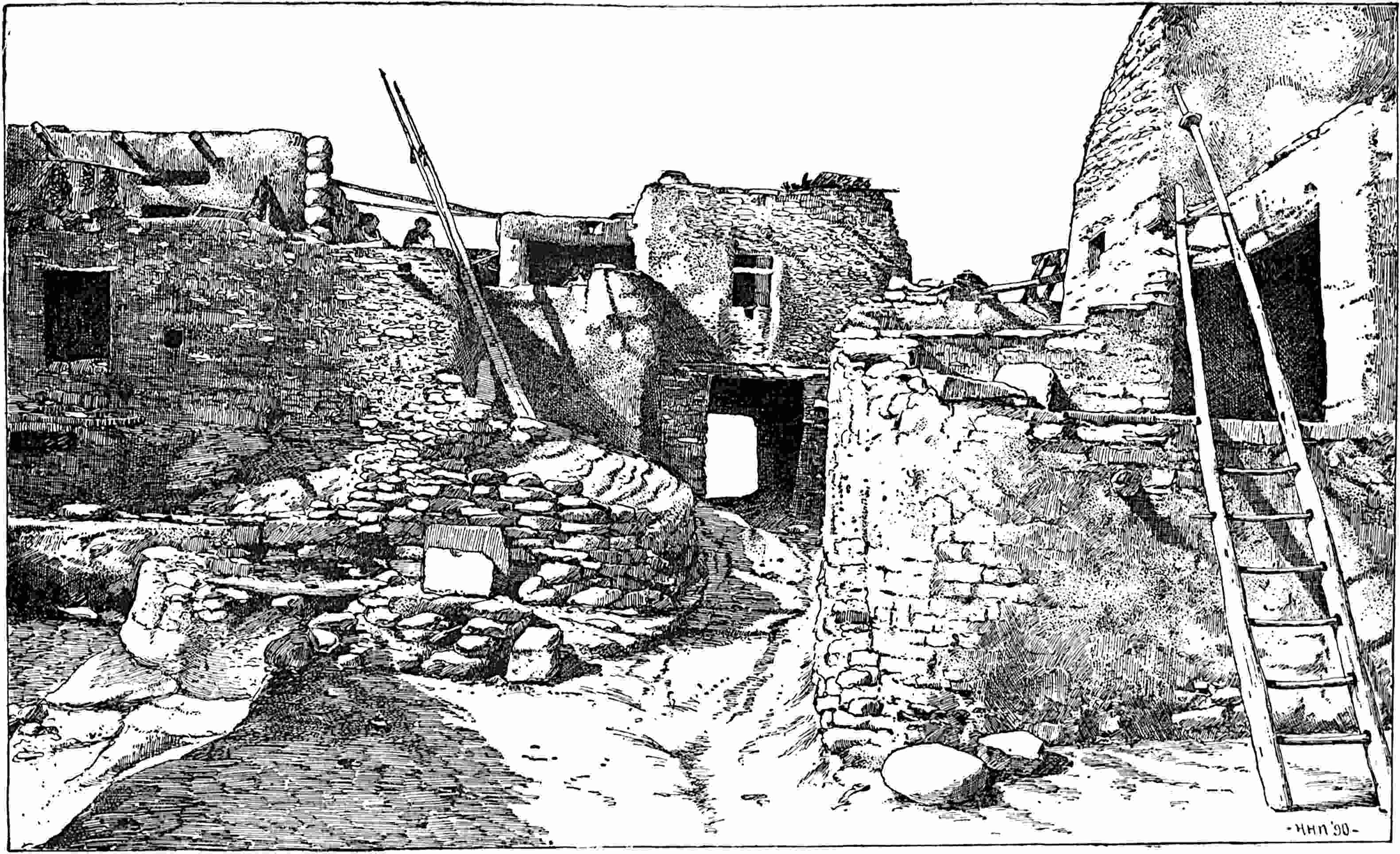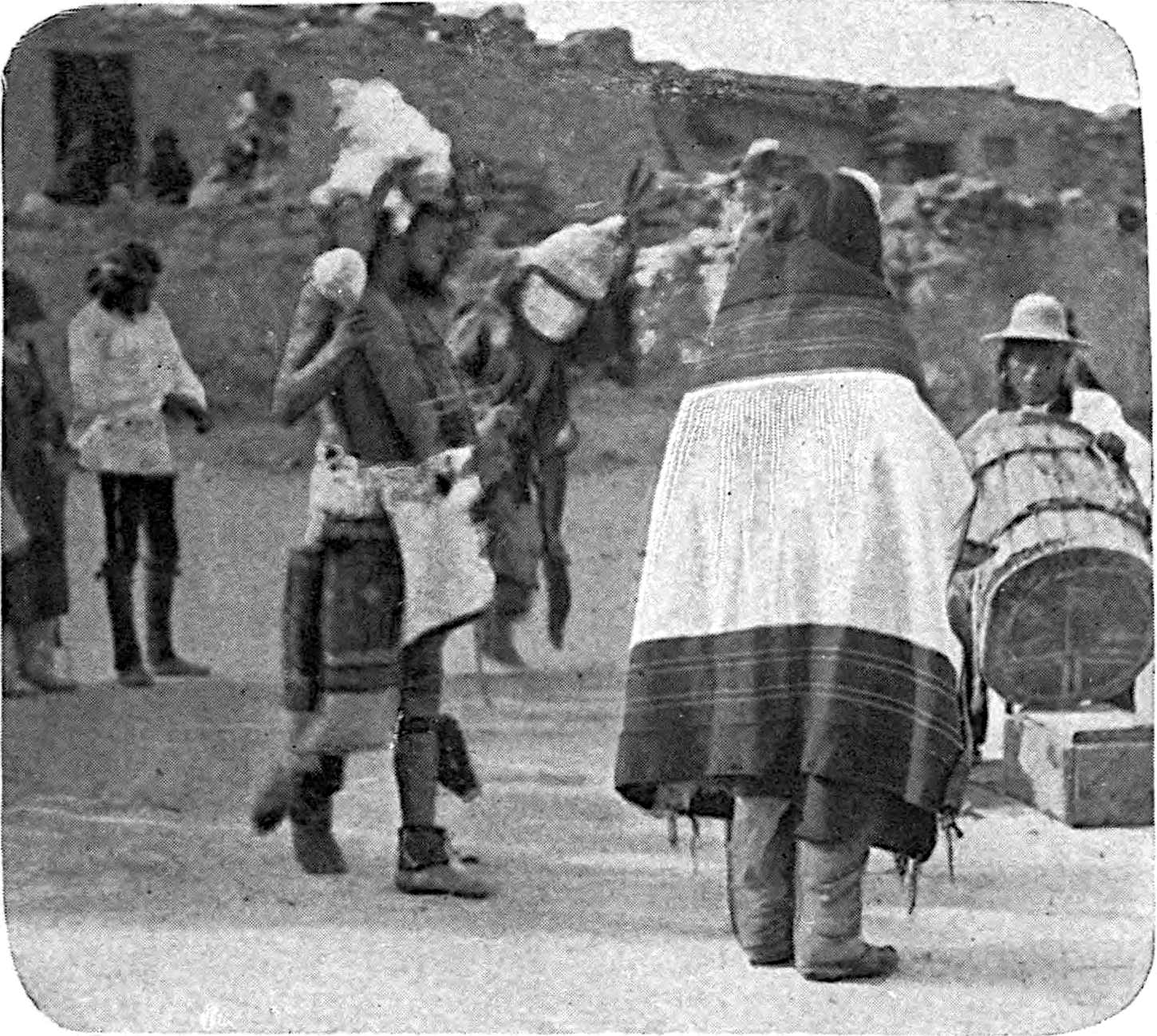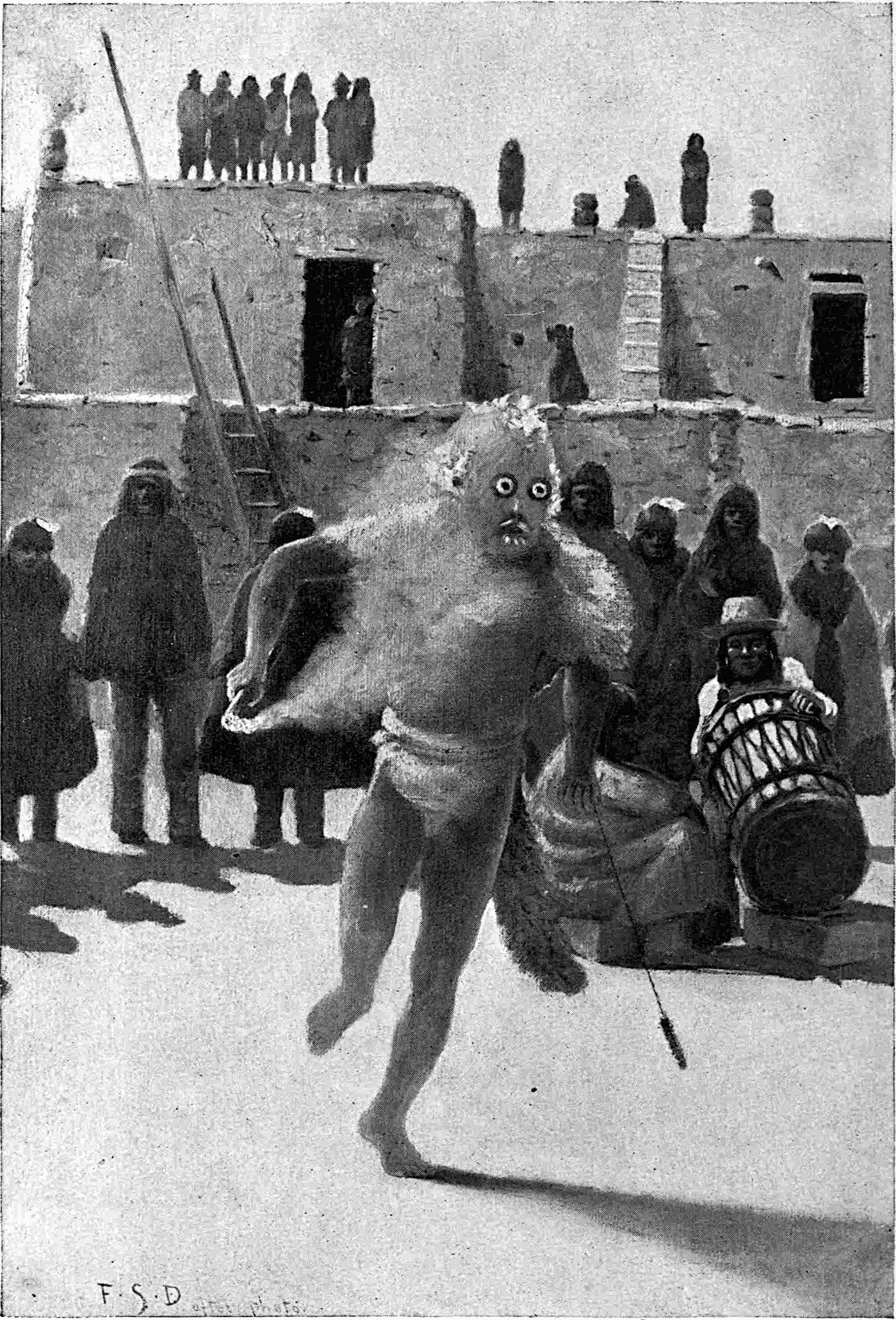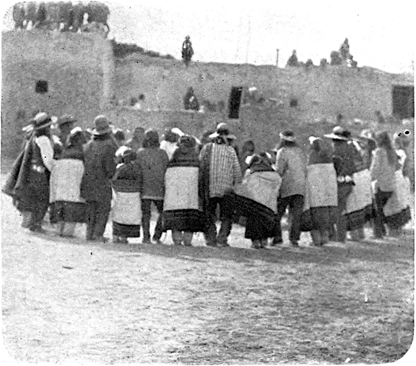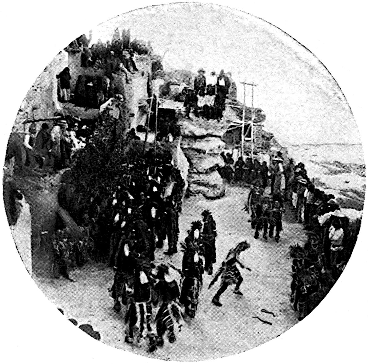 CIRCLE OF DANCERS IN THE INTERVALS BETWEEN THE APPEARANCES OF THE VARIOUS KATCINAS IN THE MOKI SOMAIKOLI CEREMONY, CICHUMOVI, ARIZONA, 1884