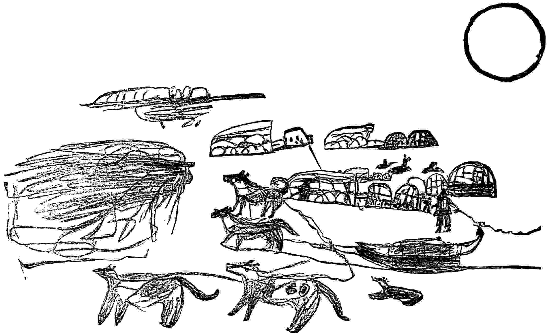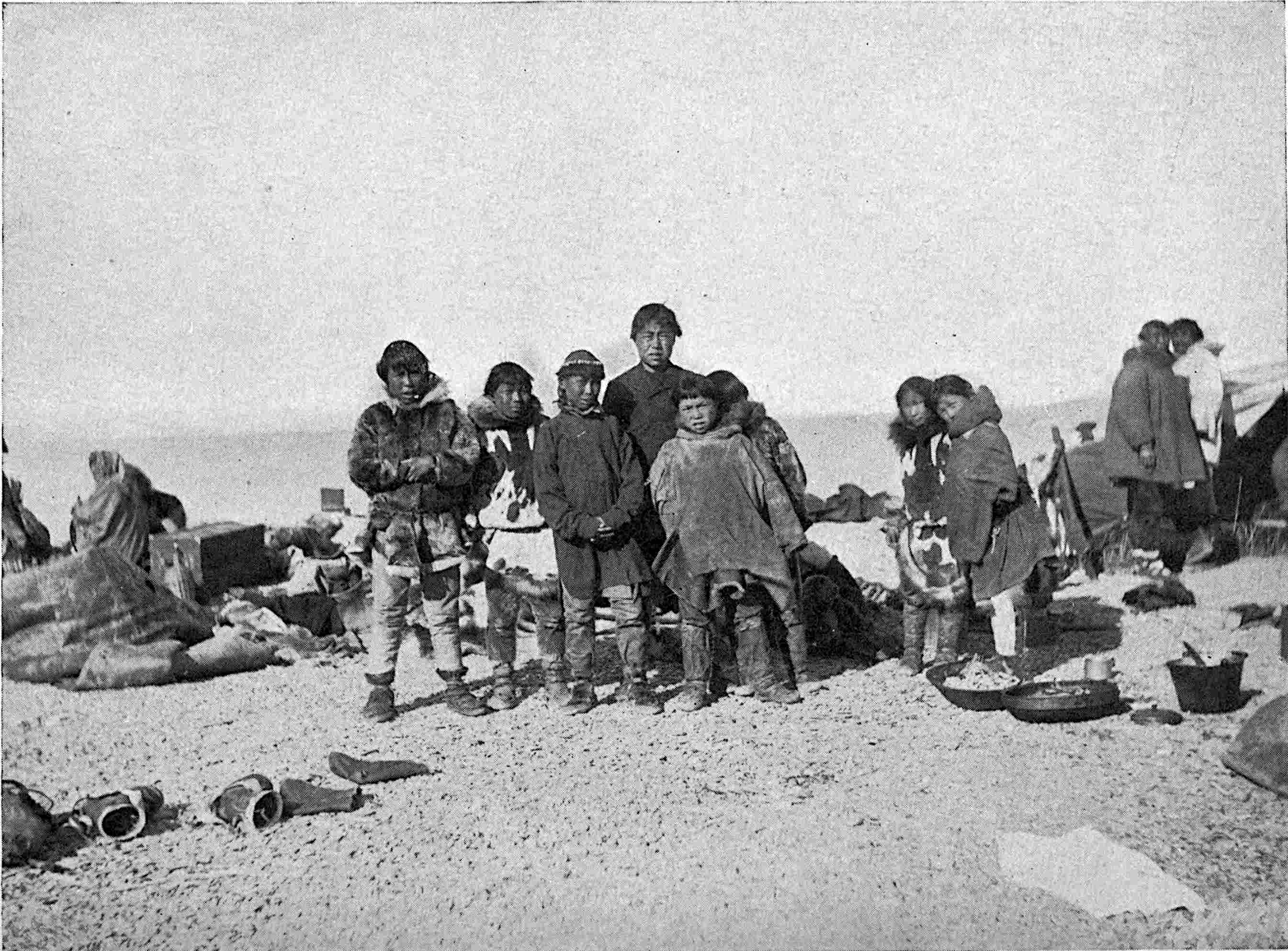 Of all the Amerind languages of North America, that of the Eskimo is probably the most homogeneous. Its dialects are alike from one side of the continent to the other, following similarity in other respects. Dall states there is a saying “that a man understanding thoroughly the dialect of either extreme, could pass from village to village, from Greenland to Labrador, from Labrador to Bering Strait, and thence southward to the Copper River, staying five days in each halting place, and that in all that journey he would encounter no greater differences of speech and customs than he could master in the few days devoted to each settlement. Probably there is no other race in the world distributed over an equal territory, which exhibits such solidarity.” They do not take to new languages. Though the Eskimo of Alaska have had long intercourse with English-speaking men, their English is very limited. Like most of the Amerinds, they prefer to invent their own terms for articles that are new to them. The Aleutian Islanders are of Eskimo stock, but their language is different from the main body of the family, and would not be understood by them.