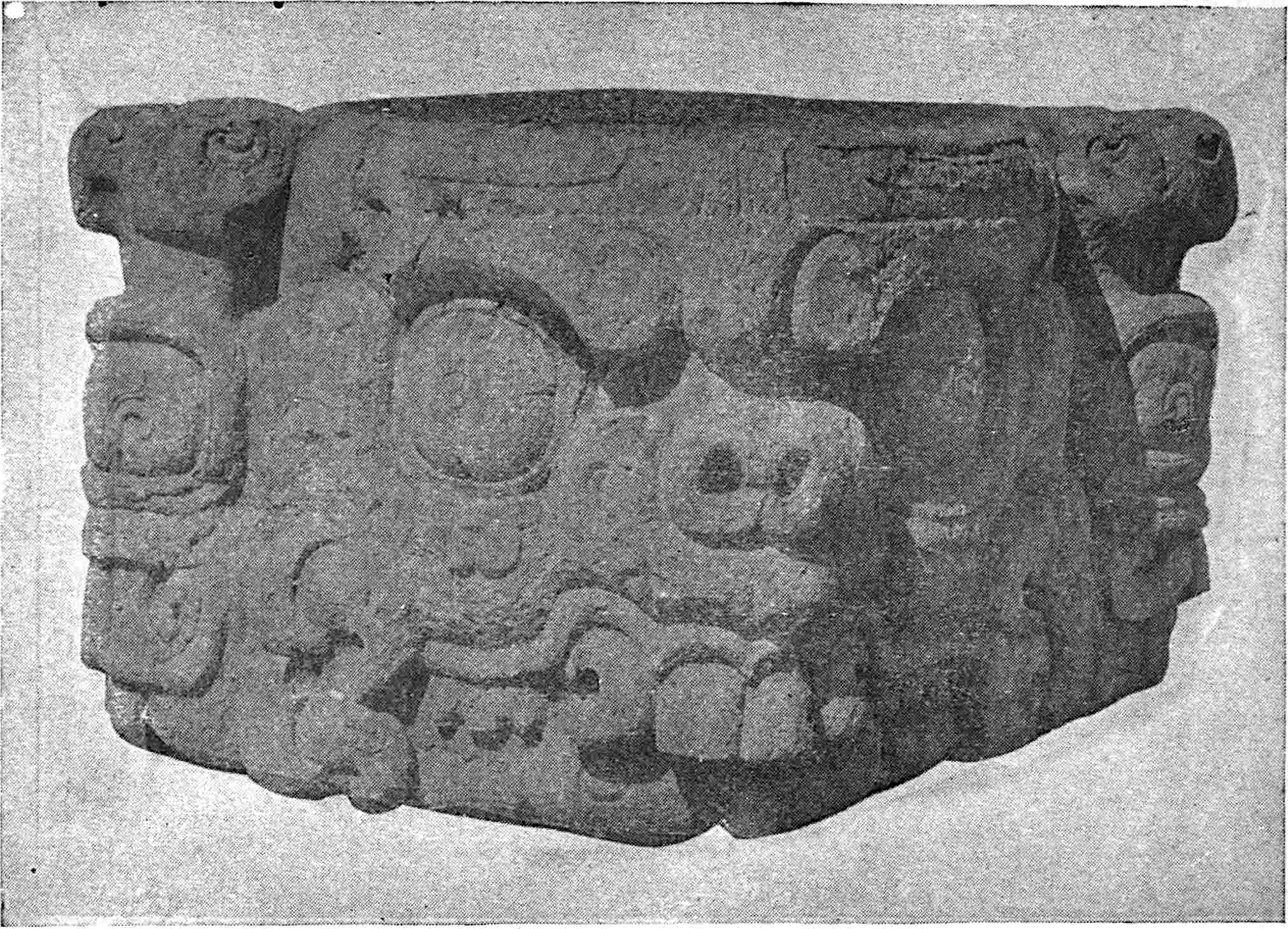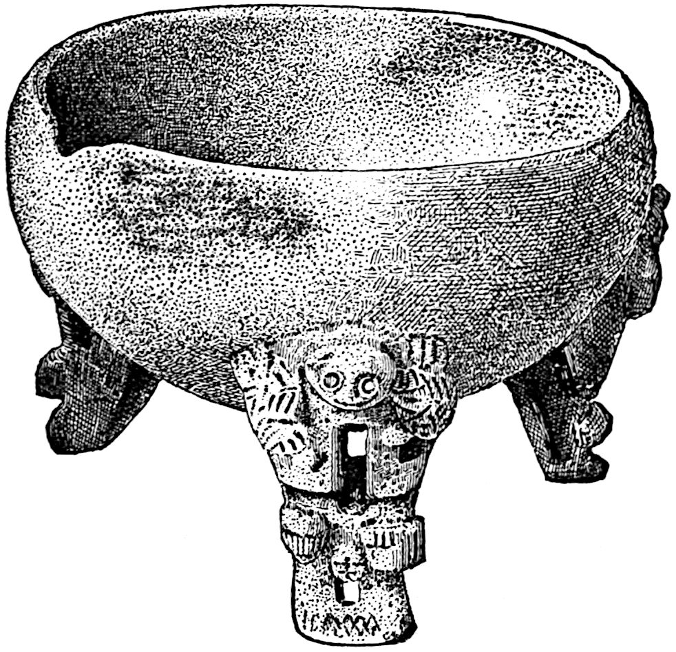The Amerind people were living in various stages of progress at the time of the Discovery. The Mexicans, according to Lewis Morgan, were “one stage higher than the Mohawks and one stage lower than the warriors of the Iliad.” Accepting this as correct, we would be able to trace human development back of the Greeks through the Amerinds of North America. Morgan suggested the classification of mankind in three broad ethnic stages: Savagery, Barbarism, and Civilisation,[11] the first ending with the acquisition of the bow and arrow, represented here by the Pai Utes; the second ending with the smelting of iron ore, represented by the early Greeks; and the third beginning with a phonetic alphabet, and represented by ourselves. In this scheme the Mexicans would fall in the middle period of Barbarism. This is a fairly good working basis, but, like all generalisations, it is only general. It must not be rigidly adhered to. The conditions on this continent were quite different from those in Europe, and consequently the line of development could not be precisely the same. There seems to be no good argument yet advanced and no archæological data yet exhibited that compel us to seek an outside derivation for the Amerind race; and this being so, it is about as reasonable to search this continent for the original home of the yellow race as to go to Asia for that of the red. That they may have come from there is possible, and so also it is possible that they came from Europe. Nor should we at present exclude even the lost 15Atlantis,[12] for the geography of the world was not always as it is now, and the elevation and subsidence of lands are still in progress. This, of course, is admitted, as also that there was a land connection across the Atlantic before man appeared in the world; but man may have appeared earlier than we suspect, and this lost land may have been in sunshine later than we believe.[13]