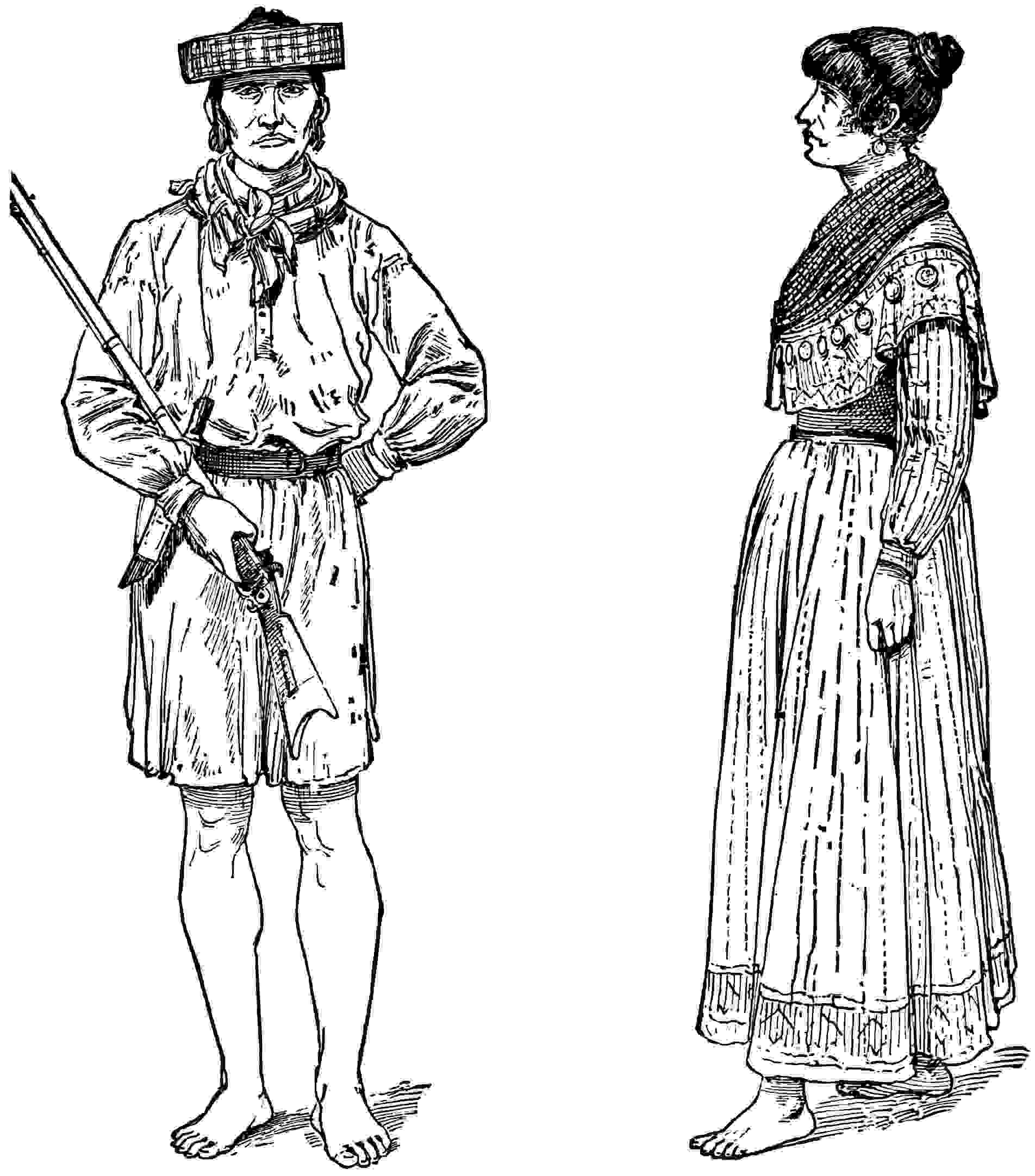 Acts of white brutality of this character could be quoted to fill a volume, but these are sufficient to indicate the manner of the European approach, except in the case of Penn. The more docile the Amerinds were, the more abuse they got. If they became self-supporting like the Navajos, the government gave them nothing; if they were murderous and deadly, like the Apaches, the government took care of them and fed them. Issuing rations is a proper thing, when we have destroyed the native means of subsistence, but the tribe that works and helps itself ought to be aided further toward civilisation in other ways. One of the most stubborn of the numerous Amerind wars was the Seminole in the Everglades of Florida. Our whole available force was engaged in this war, besides some fifty thousand militia and volunteers. Though there were probably not more than four hundred warriors, the cost of the war was over $30,000,000, and three thousand lives were sacrificed. The wars with the Apaches were long and difficult. The Modocs also carried on a disastrous war, and recently the Sioux took their turn. These wars could generally have been averted by proper diplomacy. The battle of Wounded Knee was precipitated by a wild and unauthorised shot at a critical moment by one of our soldiers. Had he remained inactive the battle would probably never have occurred. Many tribes were exterminated at an early period. Most of the Carolina tribes were destroyed between 1714 and 1740. To-day very few Amerinds exist in the United States east of the Mississippi. Those who were not destroyed, or who are not still living on lands reserved for them, are mostly west of the Mississippi, either on lands belonging to them in the Indian Territory, or on scattered reservations. Tribes in Indian Territory have long conducted a sort of civilised government, but some of them are now on the eve of selling their lands and purchasing broader tracts with the funds obtained, in Mexico. The Navajos are in possession of an enormous area lying across the line of Arizona and New Mexico, and their vast herds of sheep, cattle, and horses require extensive grazing, so that it will be impossible to reduce the area allotted to them, especially as the tribe is steadily increasing in numbers. Schools of mechanic arts should 447speedily be established among them, in order that when they eventually are obliged to look to other avenues of support than stock-raising, they can do work that will command a price. It makes not the slightest difference whether or not they are able to read English, if they have wares to sell that white people need and want, and the Navajo is capable of great development on the mechanical side. They will learn English when necessity requires it. The Mokis have a reservation adjoining the Navajos, and it is ample for them for all time, as they are not increasing, and their herds of sheep are small.