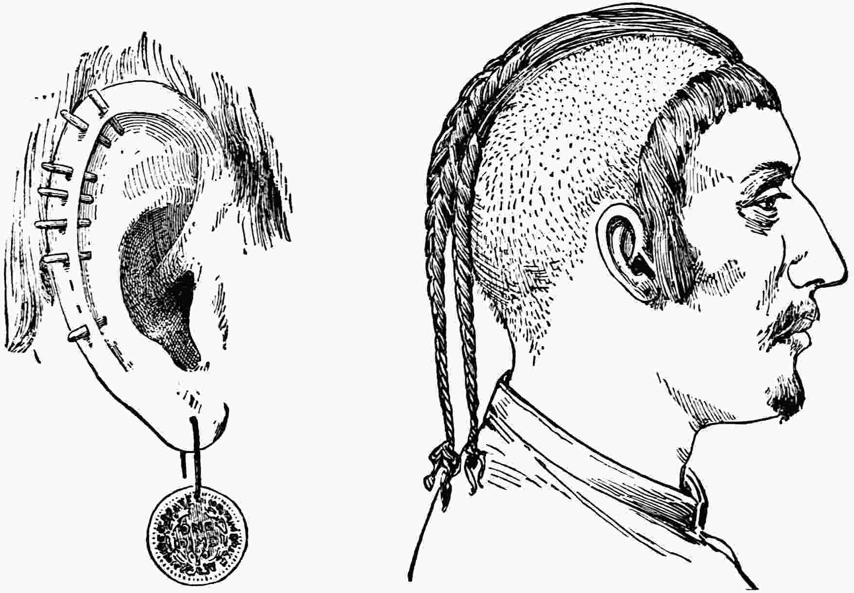 Except lower left hand one worn by the Ainos of Yezo, Japan. Introduced for comparison. The Ainos were probably the earliest inhabitants of Japan. In language and character they are different from Japanese