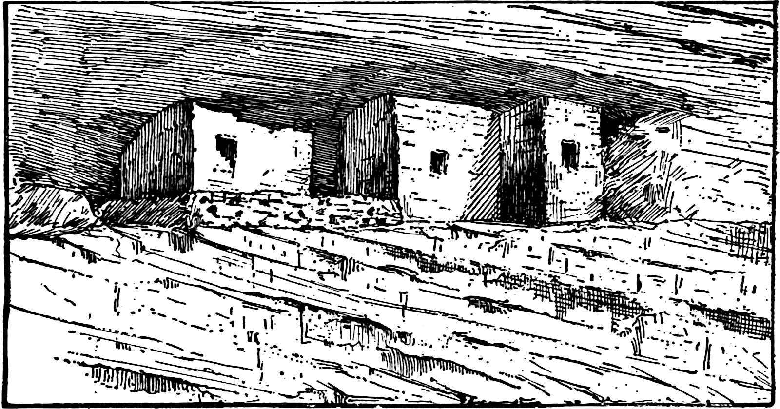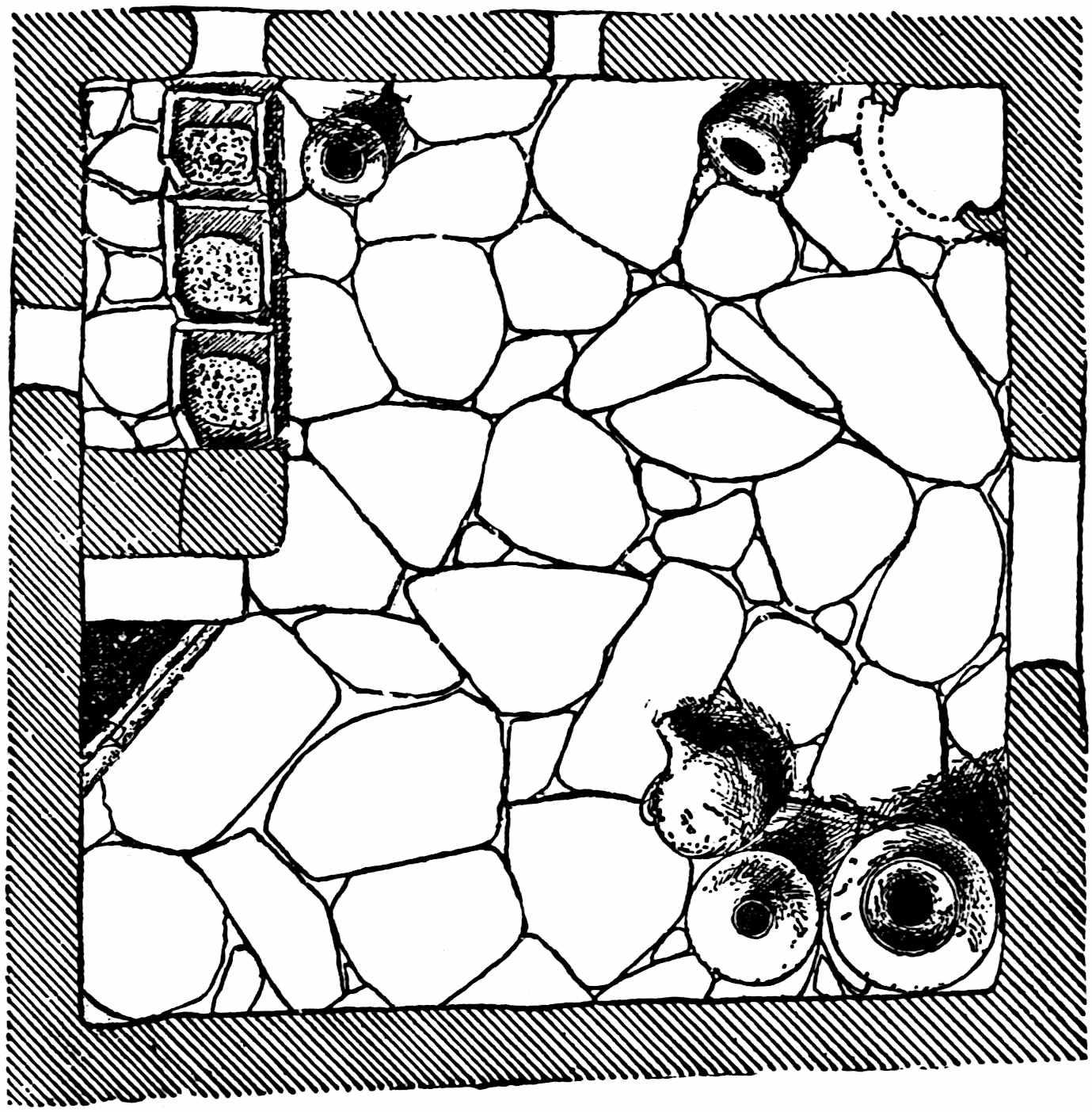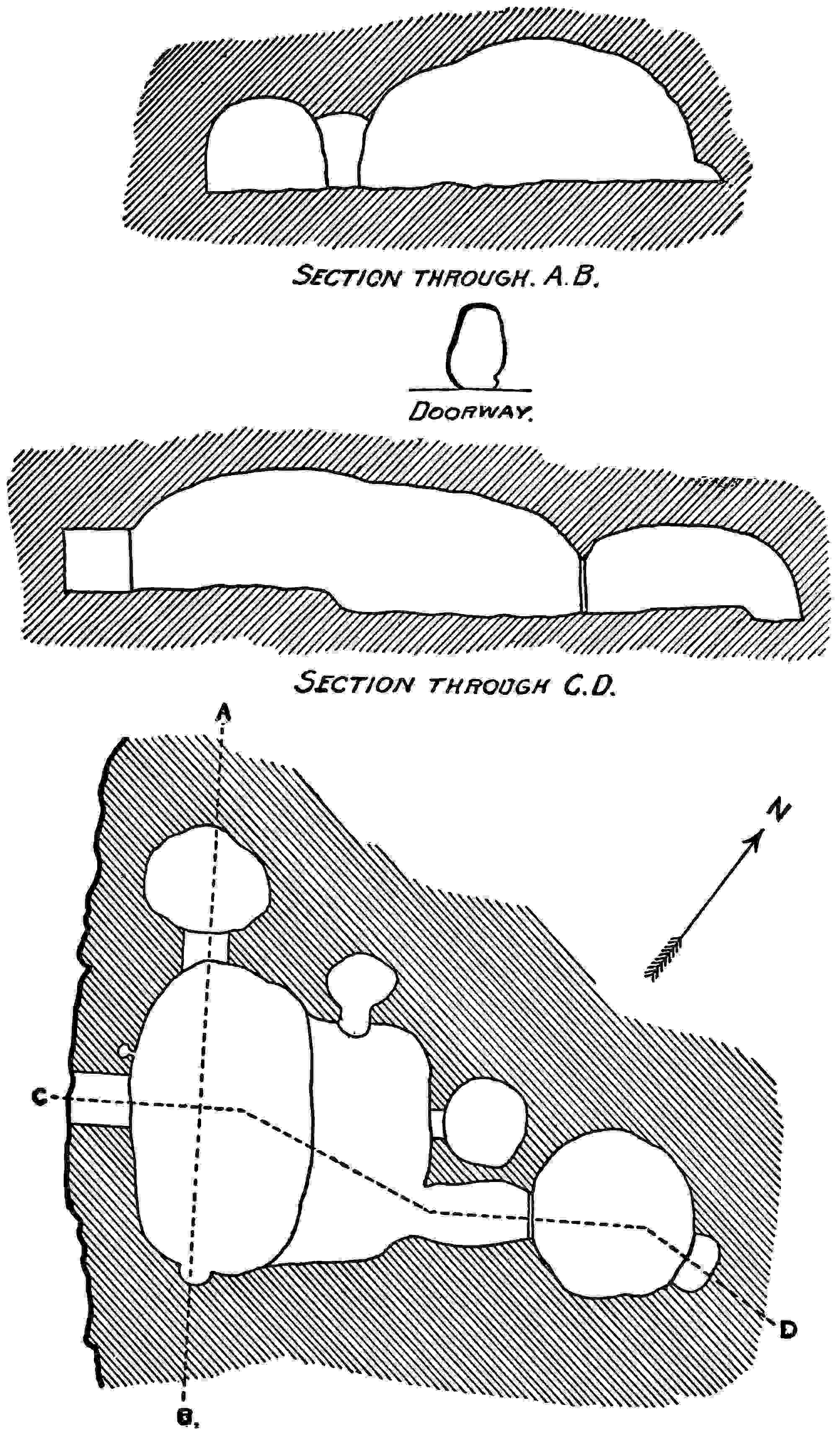 It was around the entrances of such tombs as this that the terra-cotta funeral urns were found, shown on pp. xii, xxviii, 115. They were usually in series of five with nothing in them.