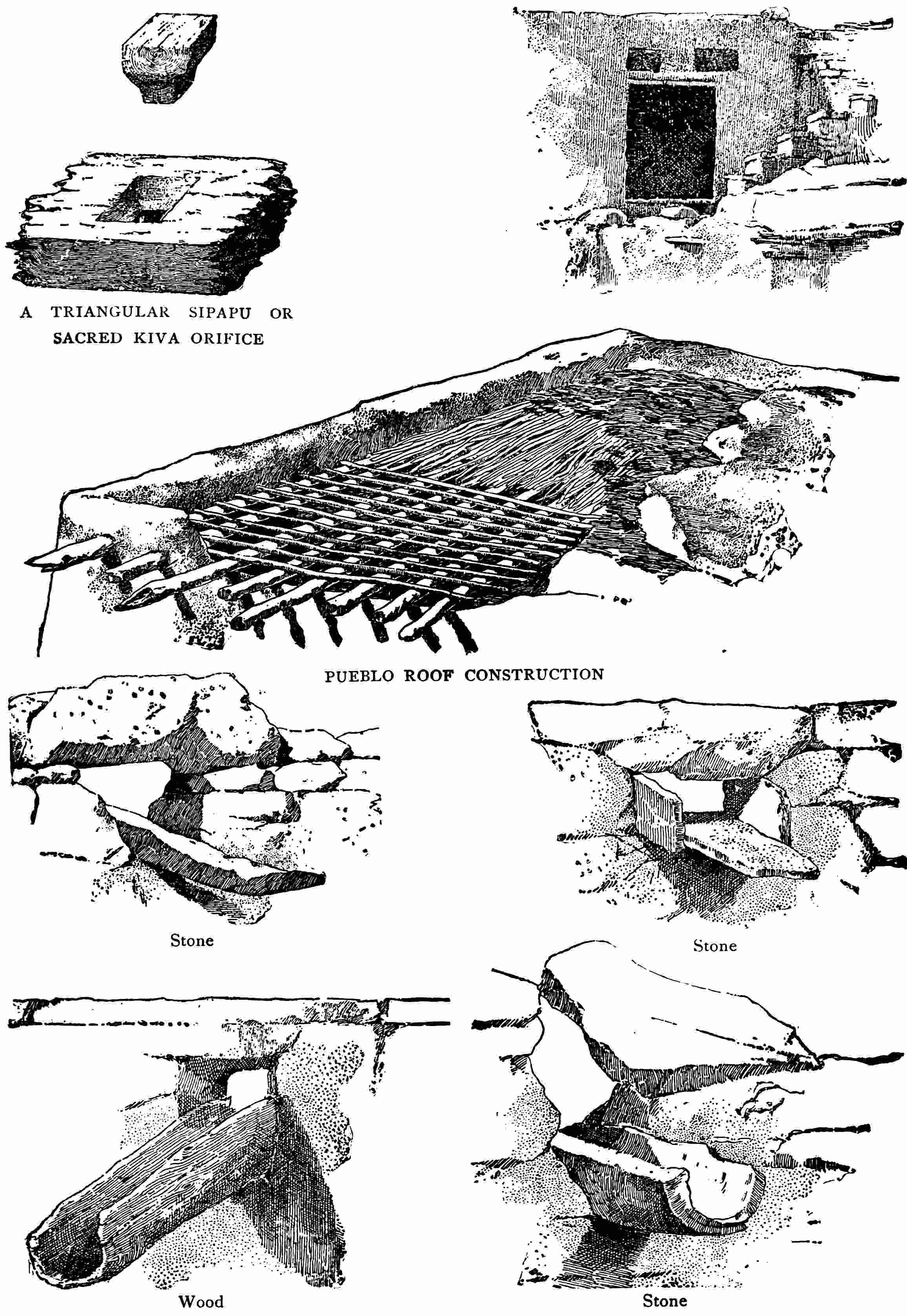 Back and forth the Amerind race moved, up and down, across the face of the American continent through the forgotten ages in ever shifting waves impelled, in the main, by climatic conditions and food quest, some leaving behind no record, others bequeathing to the future monuments and edifices that astonished the world and gave birth to elaborate and far-fetched theories to account for a development that seems to have required no more than time and the circumstances which existed. All the remains on this continent appear to be palpably American; the work of the Amerinds in their various degrees of progress. Whether they came from one source or several, they have been long enough here to become homogeneous from one end of the hemisphere to the other, and this, it is evident, would require a great stretch of time.[9] They clearly separated from the other inhabitants of the world, in any case, at a period before those inhabitants had developed present characteristics. From the time the human race was born, whether as an ape or as it now stands, there was differentiation of habits, customs, and knowledge which has never ceased and which never will cease. But as light, air, and natural conditions are similar or the same the world round, and as cerebral matter seems to be practically the same in all peoples, humanity has passed everywhere through about the same stages of development, and each stock or tribe in time has arrived at about the same place on the road of progress because they could not help it. Conditions might 14force one people ahead while other conditions might be retarding another, but whatever progression there has ever been was made on practically the same lines. The same race, however, does not throughout always develop evenly. Sir John Lubbock has said that “different races in similar stages of development often present more features of resemblance to one another than the same race does to itself in different stages of its history,” and to-day in Arizona there exist near to each other two branches of the widespread Shoshonean[10] stock, the Pai Utes and the Mokis, who exhibit the most marked differences of customs, the latter living in substantial houses of stone while the former occupy the rudest kind of brush wikiups.