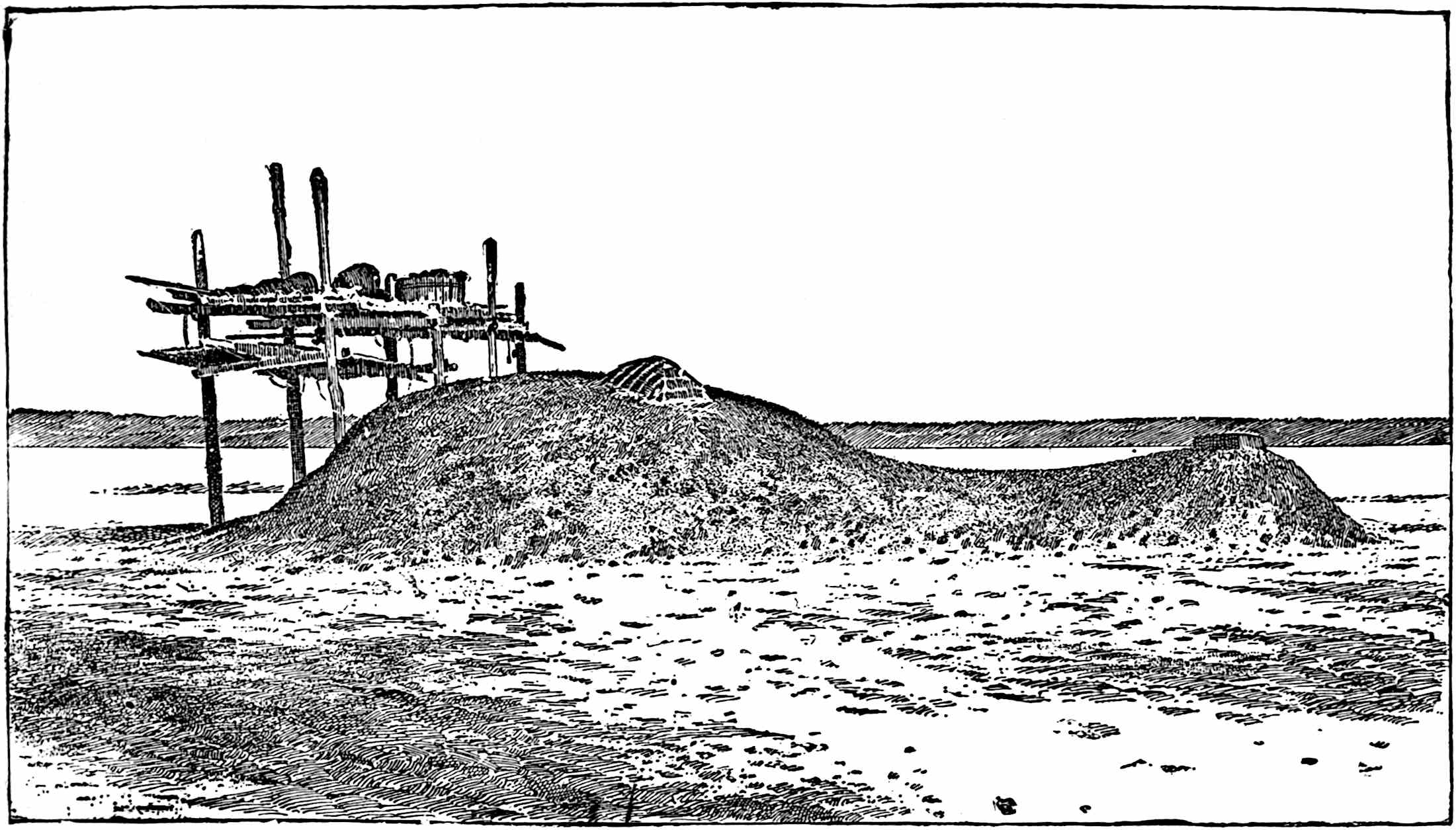 variety of detail.”—Biologia Centrali Americana, part viii., p. 64.It is important in studying burial customs of the Amerinds to remember that all members of a tribe were not necessarily disposed of in the same way. Cabeza de Vaca mentions that “sometimes common members of a tribe were buried while medicine men were burned.”
