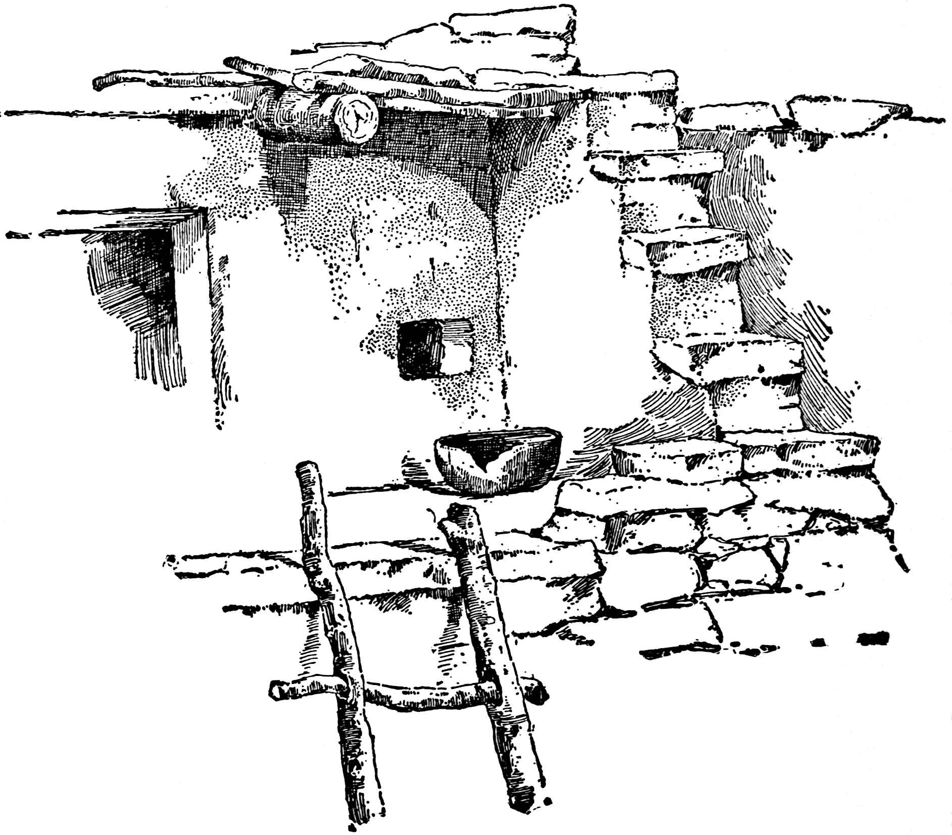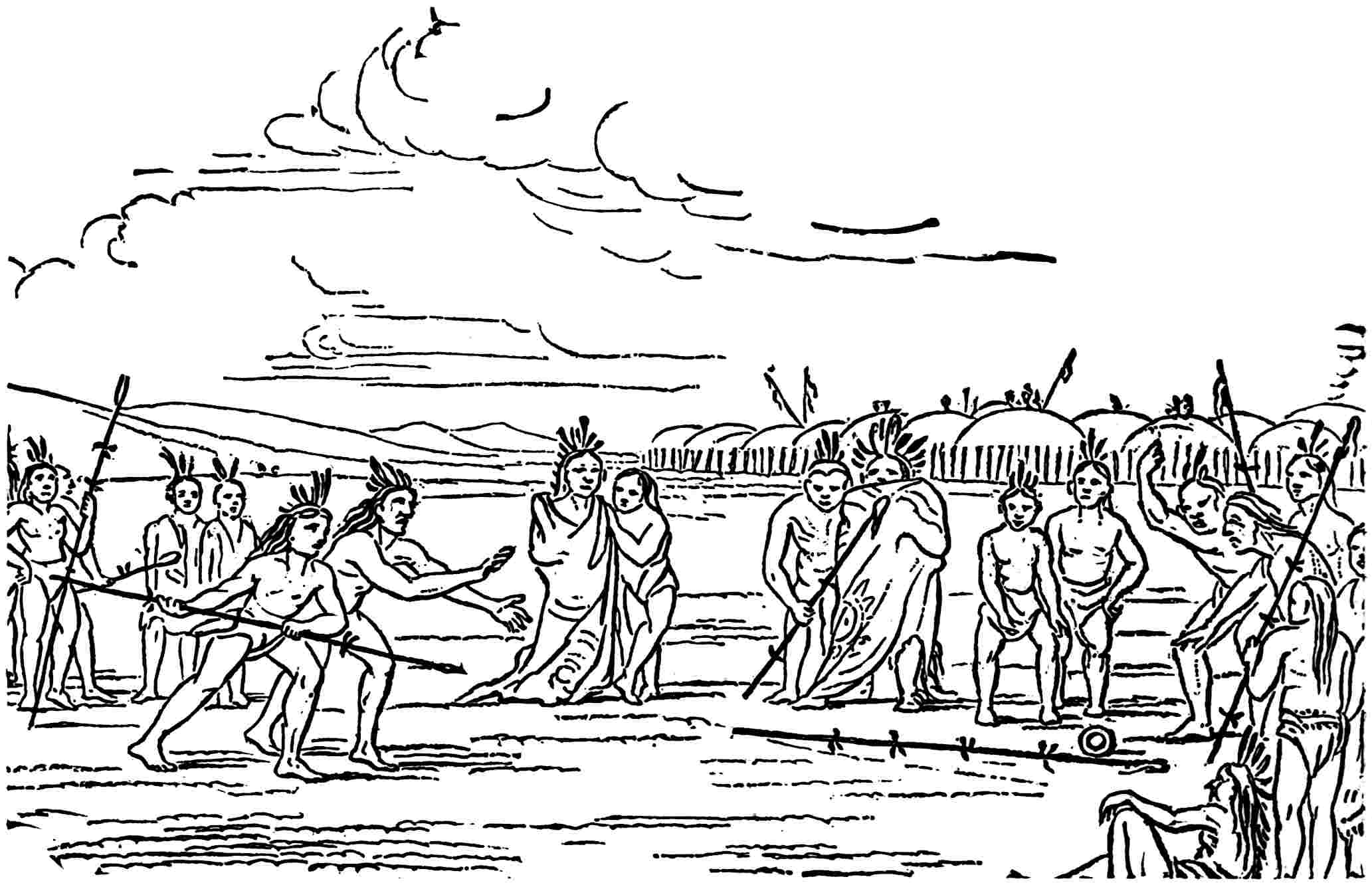 The Amerinds of North America were practically a people of stone culture, because while some had developed an ability to 16employ copper to a limited extent, they used stone tools for most of their work; their highest government appears to have been the confederacy, with in some cases perhaps a monarchical tendency; they were without domestic animals; without beasts of burden; without fireplaces or chimneys; without inside stairs; and without wheeled vehicles. There was no mystery about them. They ranged the continent, as has been noted, impelled by food quest and climate. They lived bravely and they died without fear. The following chapters will tell some of the things they did, with the hope that readers may arrive at a better understanding of the people that so long had a half-world to themselves.