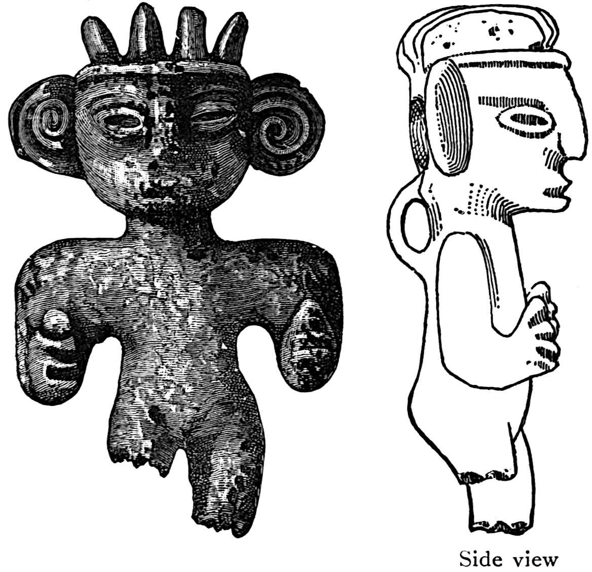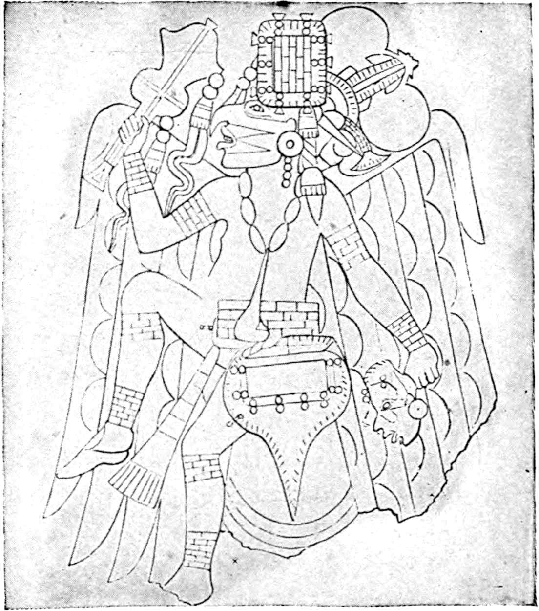 The endeavour to prove the descent of the Amerinds from one of the numerous foreign sources that have from time to time been advocated has at least resulted sometimes in the accumulation or reproduction of some interesting material. Lord Kingsborough became so infatuated with the idea that the Amerinds were the Lost Tribes of Israel that he attempted to prove it in a number of splendid volumes, which also contain admirable fac-similes of some old Amerind manuscripts.[52] He spent his fortune on this work, and through a business dispute with the merchants who furnished the paper he was thrown into Dublin Jail, where, unfortunately, he died.