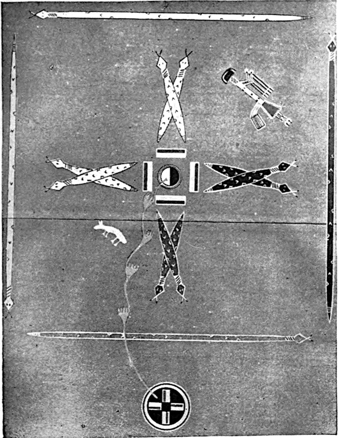 One cannot be too careful in taking statements from Amerinds, 55for, like some of their white brethren, many of them will lie for the fun of it, or just to experiment as to the probable result. Sometimes, too, when they are telling the truth they tell only part of it. This is particularly the case with regard to springs, sacred rites, and other matters which are specially cherished. Some objects in the custody of the heads of the secret orders are never shown in public, or are only shown on special occasions. Pictographs representing them, therefore, should any happen to be made, would not be intelligible to any persons but the initiated.