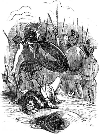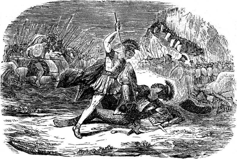 Nuevo realce dieron a la hermosura de Telémaco las lágrimas que bañaron sus mejillas al oír el nombre de su padre; y advirtiendo Calipso que no podía comer porque se hallaba su corazón oprimido por el dolor, hizo seña a las ninfas que, al momento, cantaron el combate de los centauros con los lapitas, y la bajada de Orfeo a los infiernos para sacar a Eurídice.