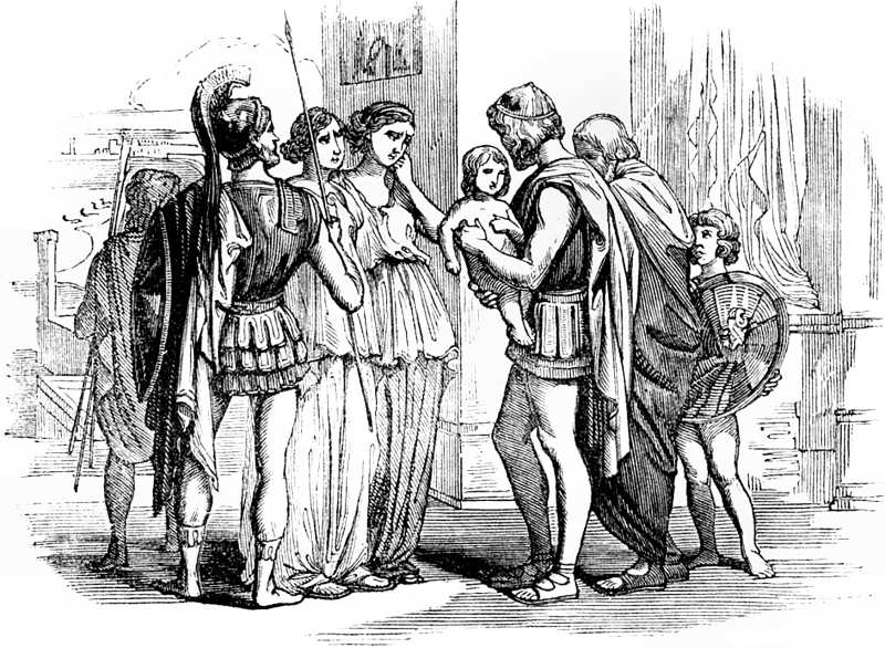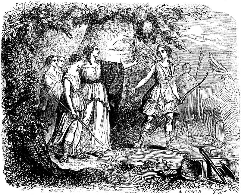 Semejante a tu padre han llenado la tierra y los mares tus tristes aventuras: ya eres digno de seguir sus huellas. Ve: nada te falta sino la corta y fácil travesía hasta Ítaca, adonde tu padre arriba en este momento: pelea a su lado y obedécele como el último de sus vasallos: da ejemplo a estos. Será Antíope tu esposa, y vivirás feliz con ella por haber buscado menos la belleza que la virtud y la sabiduría.
