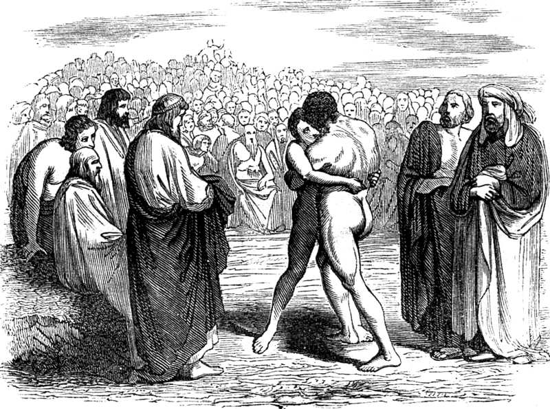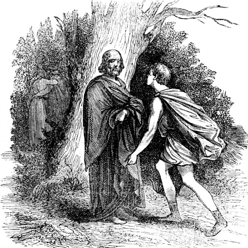 Arrepintiéronse mis hermanos de haberse conducido conmigo tan injustamente, y seducidos por la esperanza de heredarme, hicieron inútilmente los mayores esfuerzos para lograr mi benevolencia. La desunión que reinaba p. 546entre ellos produjo la venta de todos los bienes paternos, que yo compré, teniendo ellos el sentimiento de verlos en poder del mismo a quien no habían querido dar la menor parte. Viéronse, pues, reducidos a la más aflictiva pobreza; mas luego que conocieron su falta les abrí mi corazón: les perdoné, fueron recibidos en mi casa, proporcioné a cada uno de ellos medios para ejercer el comercio marítimo; y reunidos todos viven juntos pacíficamente en mi casa, habiendo yo llegado a ser el padre común de aquellas familias cuya unión y aplicación al trabajo les proporcionó en breve considerables riquezas. Mas entretanto la senectud, como ves, ha venido a blanquear mi cabello y arrugar mi rostro, advirtiéndome que no disfrutaré por largo tiempo tan cumplida prosperidad. Antes de morir he querido ver por la última vez la tierra querida, más grata para mí que mi propia patria; la Licia donde aprendí a ser bueno teniendo por modelo al virtuoso Alcino. Supe antes de llegar a ella por un negociante de las islas Cícladas, que aún existe en Delos un hijo de Orsíloco, digno imitador de las virtudes de su abuelo Alcino; y al momento dejé el camino de la Licia, apresurándome a venir en su busca a esta isla consagrada a Apolo, bajo los auspicios de este dios, como vástago de la familia a quien todo lo debo. Réstame poco tiempo que vivir; pues la parca, enemiga del reposo que tan rara vez conceden los dioses a los mortales, no tardará en cortar el hilo de mis días; mas moriré contento si, antes de cerrarse mis párpados para siempre, llego a ver al nieto de mi antiguo señor. Tú que habitas en esta isla, dime, si le conoces, dónde podré encontrarle. Si me proporcionas que le vea, otórguente los dioses la recompensa, permitiéndote acariciar sentados sobre tus rodillas a los nietos de tus nietos hasta p. 547la quinta generación, y plázcales conservar en tu casa la abundancia y la paz como fruto de tus virtudes. En tanto que así hablaba Aristonoo, lloraba Sofrónimo, ora de gozo, ora de dolor; y sin poder articular palabra tendió al fin los brazos al cuello del anciano, y estrechándole contra su corazón se esforzó a decirle entre sollozos: