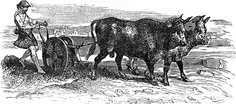 Acabada la comida condujo a Sofrónimo a las dilatadas praderas en que vagaban rumiando grandes piaras de ganados mayores a la orilla del río, y vieron venir numerosos rebaños que regresaban de pastar llenas de leche las madres y seguidas de sus tiernos corderillos que las seguían retozando; y por último considerable número de esclavos que se animaban al trabajo por el interés de su señor, que por su dulzura y humanidad se hacía amar de ellos, suavizando las penalidades de la esclavitud.