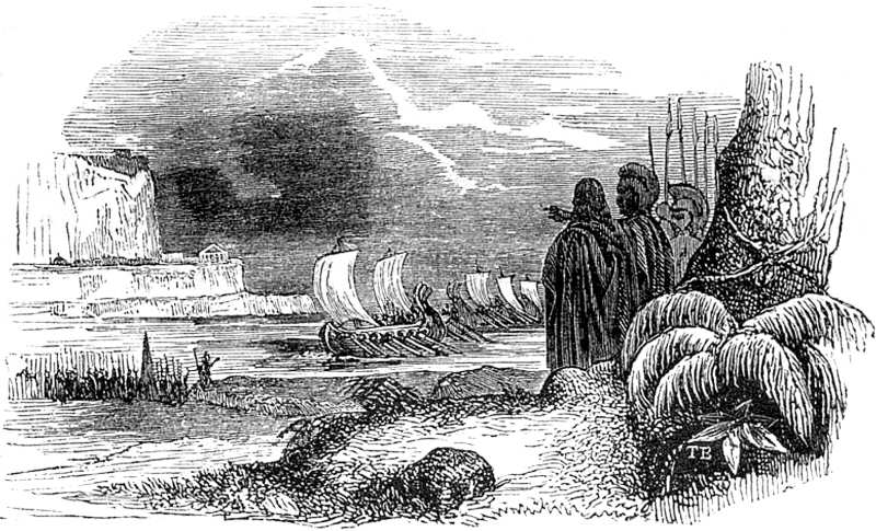 Hínchanse las velas, levantan las anclas, y la tierra empieza a huir al parecer de su vista. Percibe de lejos el experimentado piloto los montes de Léucade, cuyas cimas se ocultan entre un torbellino de heladas escarchas, y los Acroceraunios, que ostentan su orgullosa frente humillada tantas veces por el rayo celeste.