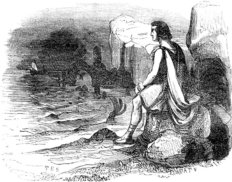Apenas hubo pronunciado el extranjero estas tristes palabras, se introdujo en un pequeño bosquecillo que señoreaba una roca, desde el cual miraba atentamente las aguas, huyendo de los hombres afligido al parecer por no poder partir.