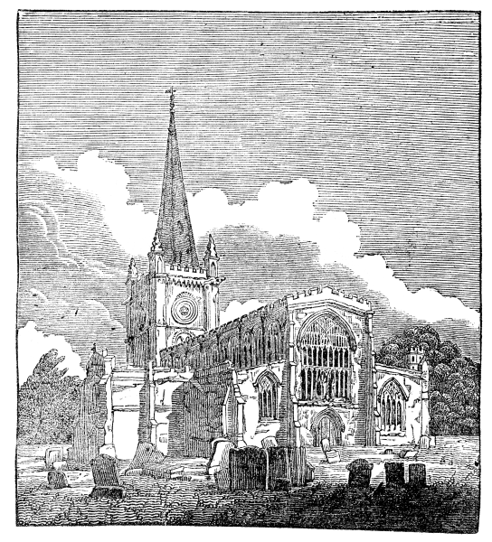 Within the walls of the fine old Church of Stratford-on-Avon, represented in the above wood-cut, lie the ashes of Shakspeare. In a small house still standing in the same town, was the great poet born. We may best convey to our readers some impression of the interest which we have felt in visiting this spot, by reprinting some passages from ‘The Sketch Book’ of Washington Irving, one of the most pleasing and accomplished writers that the United States has produced.
