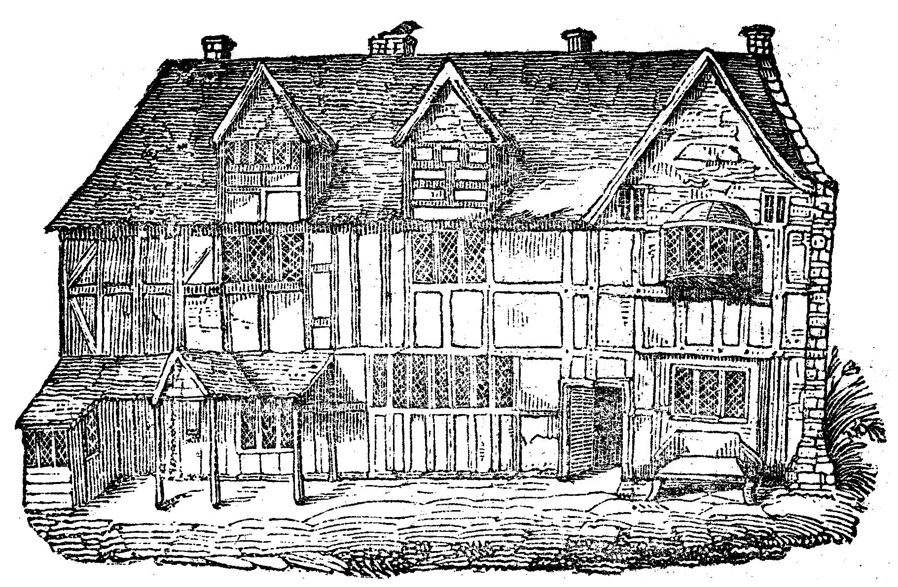 “The house is shown by a garrulous old lady in a frosty red face, lighted up by a cold blue anxious eye, and garnished with artificial locks of flaxen hair, curling from under an exceedingly dirty cap. She was peculiarly assiduous in exhibiting the relics with which this, like all other celebrated shrines, abounds. There was the shattered stock of the very matchlock with which Shakspeare shot the deer, on his poaching exploit. There, too, was his tobacco-box; which proves that he was a rival smoker of Sir Walter Raleigh; the sword also with which he played Hamlet: and the identical lanthorn with which Friar Laurence discovered Romeo and Juliet at the tomb! There was an ample supply also of Shakspeare’s mulberry tree, which seems to have as extraordinary powers of self-multiplication as the wood of the true cross; of which there is enough extant to build a ship of the line.”